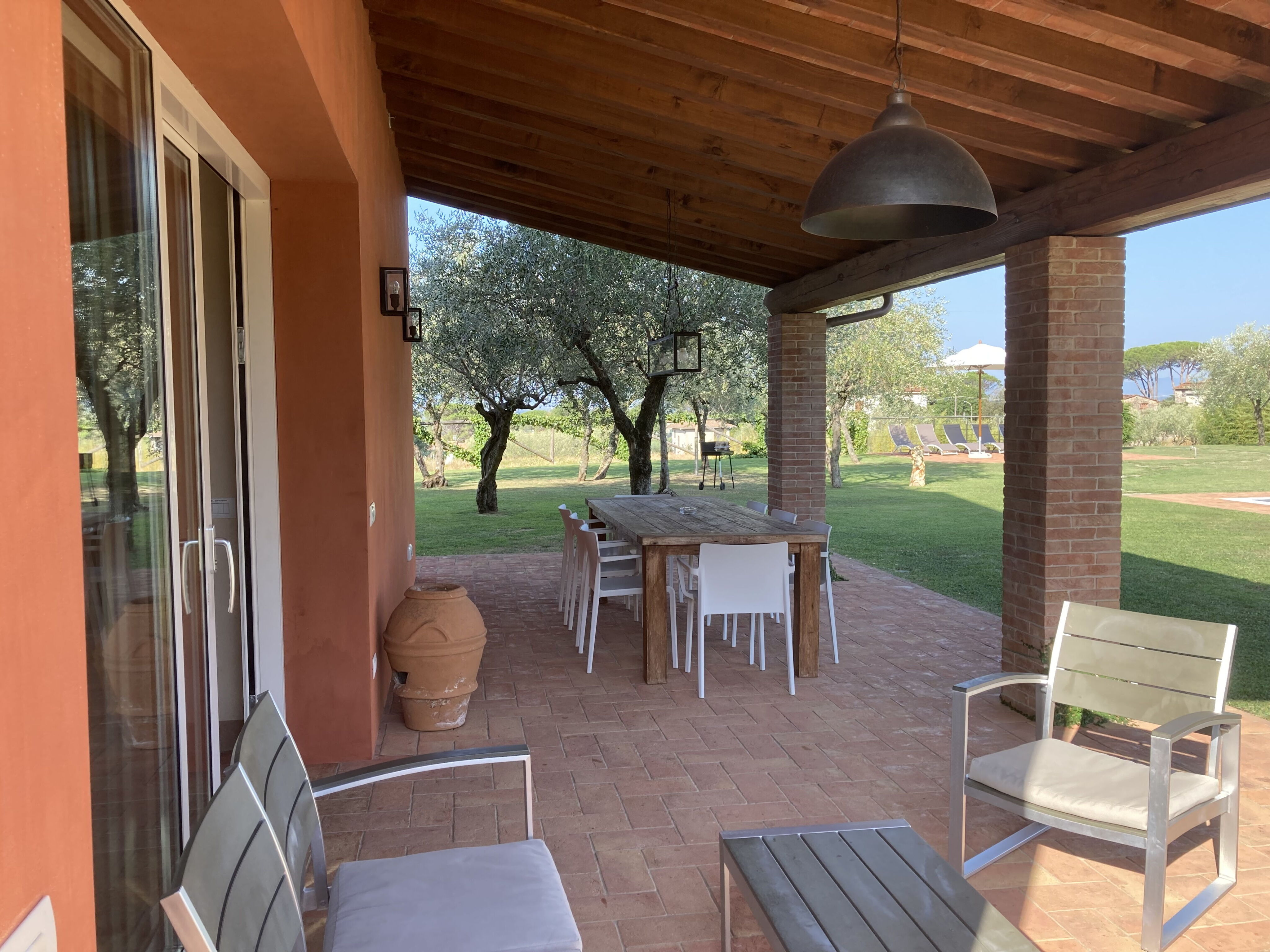 After arriving you will be welcomed by the owner or manager where you’ll find a beautiful clean well-maintained property with views of the hills perfect for a splendid holiday in Tuscany. After a busy day of shopping, spend some time with friends and family poolside enjoying a glass of wine - a perfect way to unwind at the end the day. If you enjoy cooking for family and friends there is a well-equipped kitchen including coffee machine, microwave, toaster, stove and refrigerator, as well as, plenty of tableware and cutlery for up to nine people. If you prefer to dine 'al fresco', there is a fully furnished veranda where you can enjoy the weather while dining outdoors.