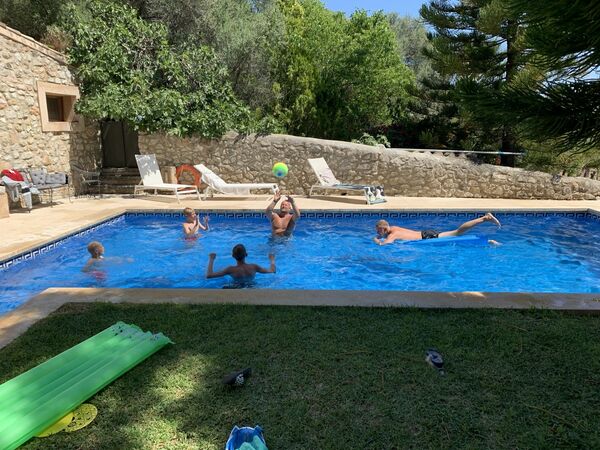 Very large, cosy, historical villa "Son Real", 2 storeys, renovated. Outside the resort Lloseta, in a quiet, sunny position, area with little traffic. Private: beautiful, well-kept garden with lawn and wildlife garden, swimming pool angular (01.01.-31.12.). Outdoor shower, pool house with shower and WC, patio, pergola, terrace, barbecue. In the house: internet access, WiFi, central heating system, air conditioning, washing machine. Parking at the house on the premises. Shop 1 km, grocery 1 km, supermarket 1 km, bar 1 km, bakery 700 m, café, pub garden 800 m, sandy beach 30 km, rocky beach 33 km. Nearby attractions: Restaurante Tomeu Lassio 1.3 km, Restaurante Ca'n Carrossa 1.5 km. Please note: car recommended. Suitable for families, suitable for seniors baby equipment on request (included). Object suitable for 12 adults groups of teenagers on request only. Loading and unloading of baggage is possible at the holiday house.
