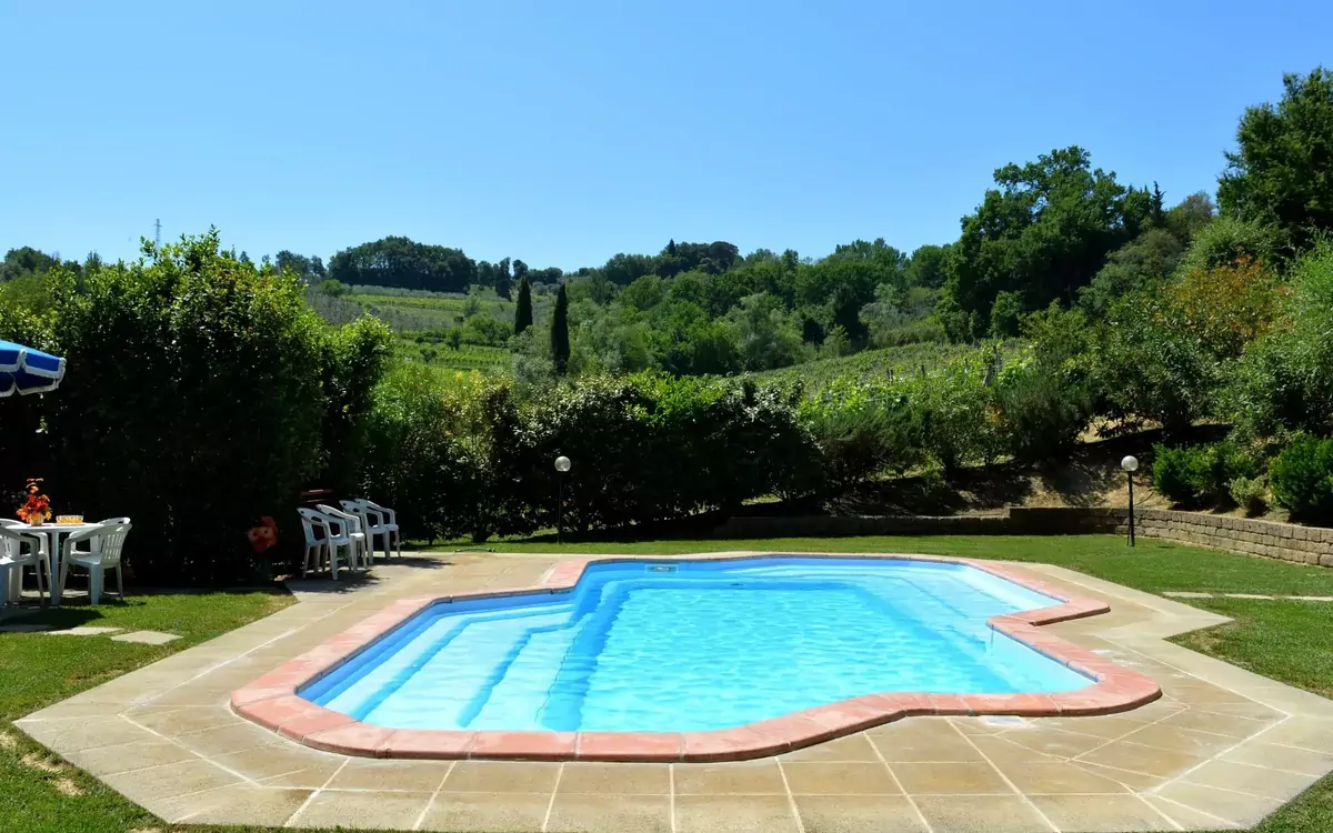 Nestled in the rolling Tuscan countryside of Gambassi Terme, Italy, Casa dei Ciliegi is a breathtaking 18th-century farmhouse that has been meticulously renovated to offer an exceptional holiday rental experience. Surrounded by lush fields and vineyards, this remarkable property sits on 5 hectares of land and enjoys a secluded, quiet, and sunny position, making it an ideal retreat for those seeking both relaxation and exploration. The villa features a private swimming pool measuring 5 x 10 meters with a depth of 140 cm, available seasonally from April 24th to October 9th, providing the perfect setting for leisurely afternoons under the Tuscan sun. The expansive yard envelops the property in natural beauty, offering generous outdoor spaces for guests to unwind and connect with the surrounding landscape. Parking is conveniently available on the premises, ensuring a seamless and comfortable arrival for all guests.
