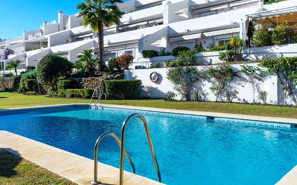 Discover the luxurious Apartment block "Mirador" nestled in the heart of Benahavís, Spain. This vacation rental boasts a stunning outdoor area with a shared garden, lawn, and seasonal swimming pool (depth 80 - 210 cm, available from May 1st to October 31st). Enjoy the convenience of on-site amenities like central heating, air conditioning, and a washing machine. Parking is also available for your convenience.