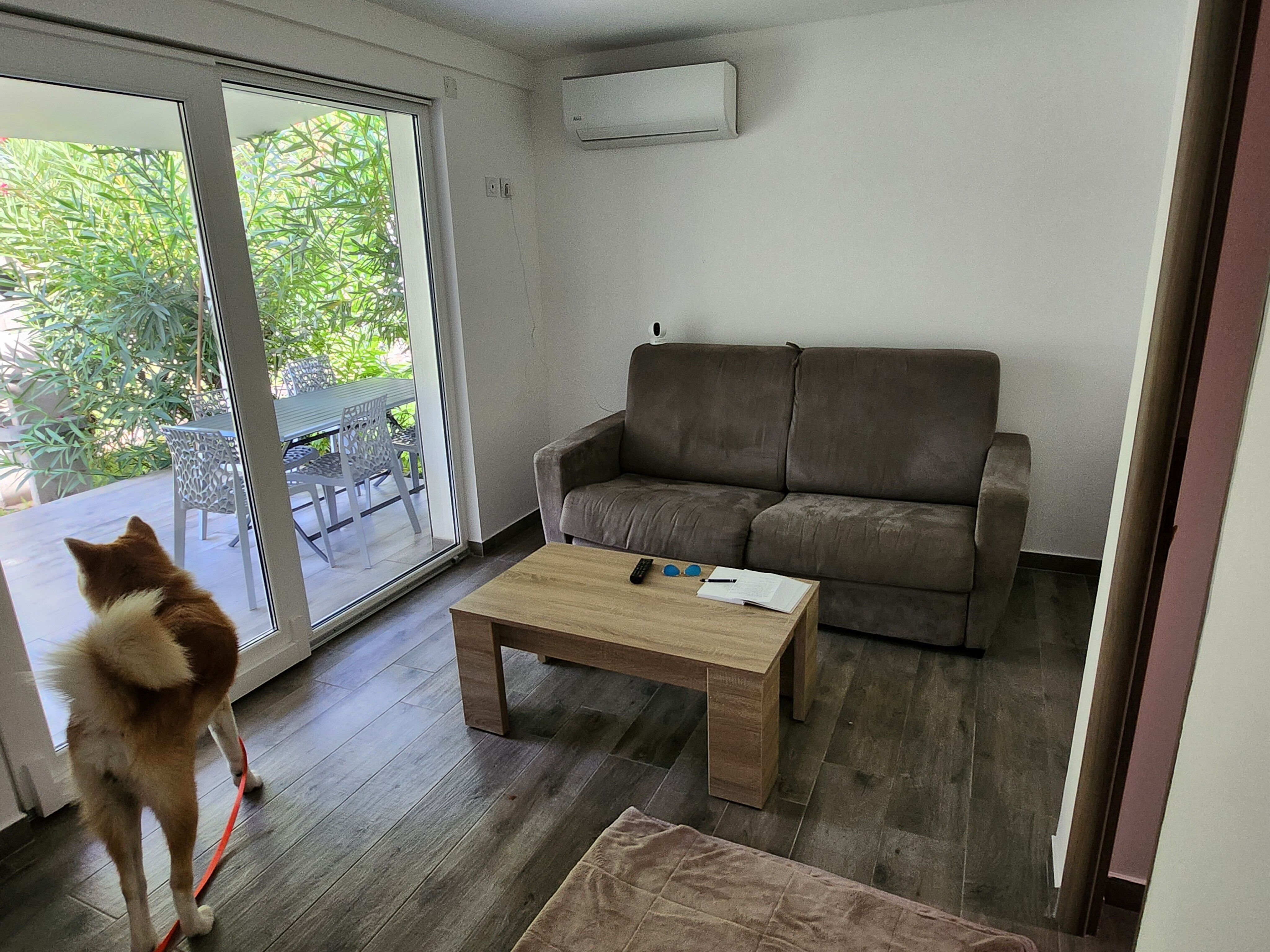Wir haben die Ferienwohnung mit fünf Personen (zwei Erwachsene, drei Kinder) und einem Hund bewohnt. Die Größe der Wohnung war für uns eher grenzwertig, besonders die Küche war klein und sehr spartanisch ausgestattet. Zu Beginn unseres Aufenthalts war die Spülmaschine defekt, was aber nach Meldung an die zuständigen Personen schnell behoben wurde – sie wurde umgehend ausgetauscht. Der Pool war hervorragend gepflegt, sauber und Teil einer insgesamt sehr schönen Anlage. Die Lage der Wohnung war praktisch: Nähe zum Meer, Einkaufsmöglichkeiten im Sparmarkt und gute Verkehrsanbindung. Das Auto konnte sicher hinter abschließbaren Toren geparkt werden. Weniger schön war die starke Insektenbelastung, insbesondere durch Bremsen, sodass längeres Sitzen auf der Terrasse leider schwierig war.