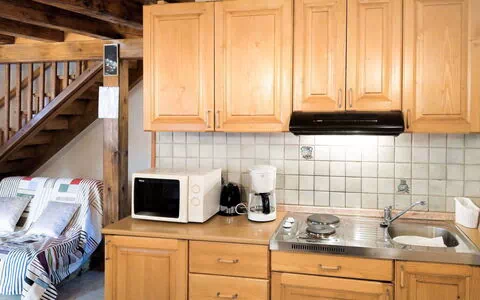 Kitchenette: in the living room. Kitchen/ cooking equipment: 2 electric plates, microwave oven, combination fridge-freezer, coffee machine, water boiler, toaster.