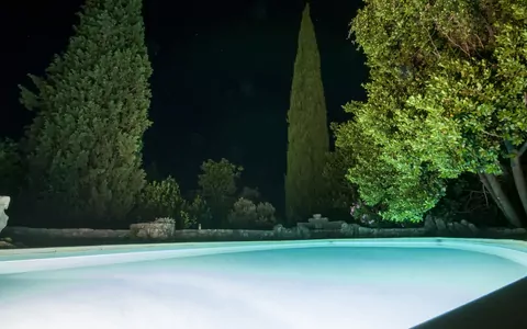 Villa Podcempres is a renovated, three-story, single-family house located in a secluded countryside setting near Baćina, Croatia. This holiday rental features a private, 800 m2 property with a wildlife garden and trees, offering a perfect retreat from the city.