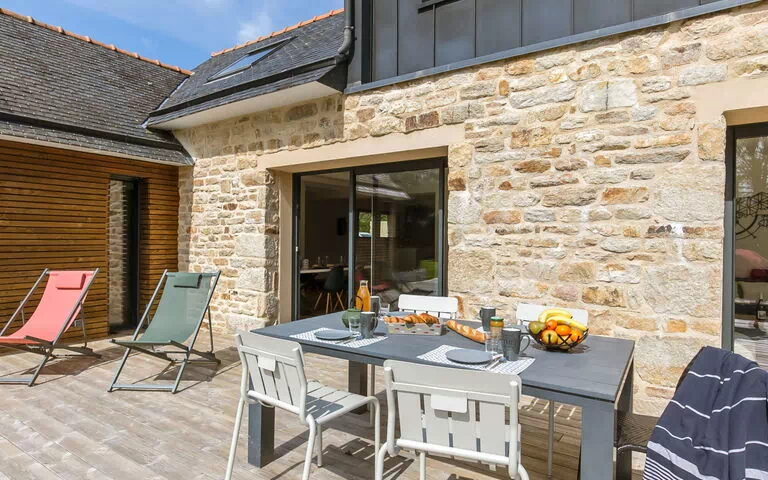 This modern and beautiful "Breizh Riviera" property offers a comfortable holiday rental in Clohars-fouesnant, France. It features a well-kept garden, a heated and secured swimming pool, parking spaces, and a single garage. Enjoy amenities such as Internet Wifi, a yard, and a prime location near various attractions.