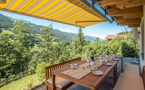 This detached property, House "Pfisterer," offers a comfortable vacation rental in the district of Högmoos near the towns of Bruck, Zell am See, and Taxenbach, Austria. Situated on a slope, the house features a private terrace with garden furniture, perfect for outdoor relaxation. Amenities include a yard, internet WiFi, parking for three cars on the premises, a storage room for skis, a washing machine, and a ski boot dryer.