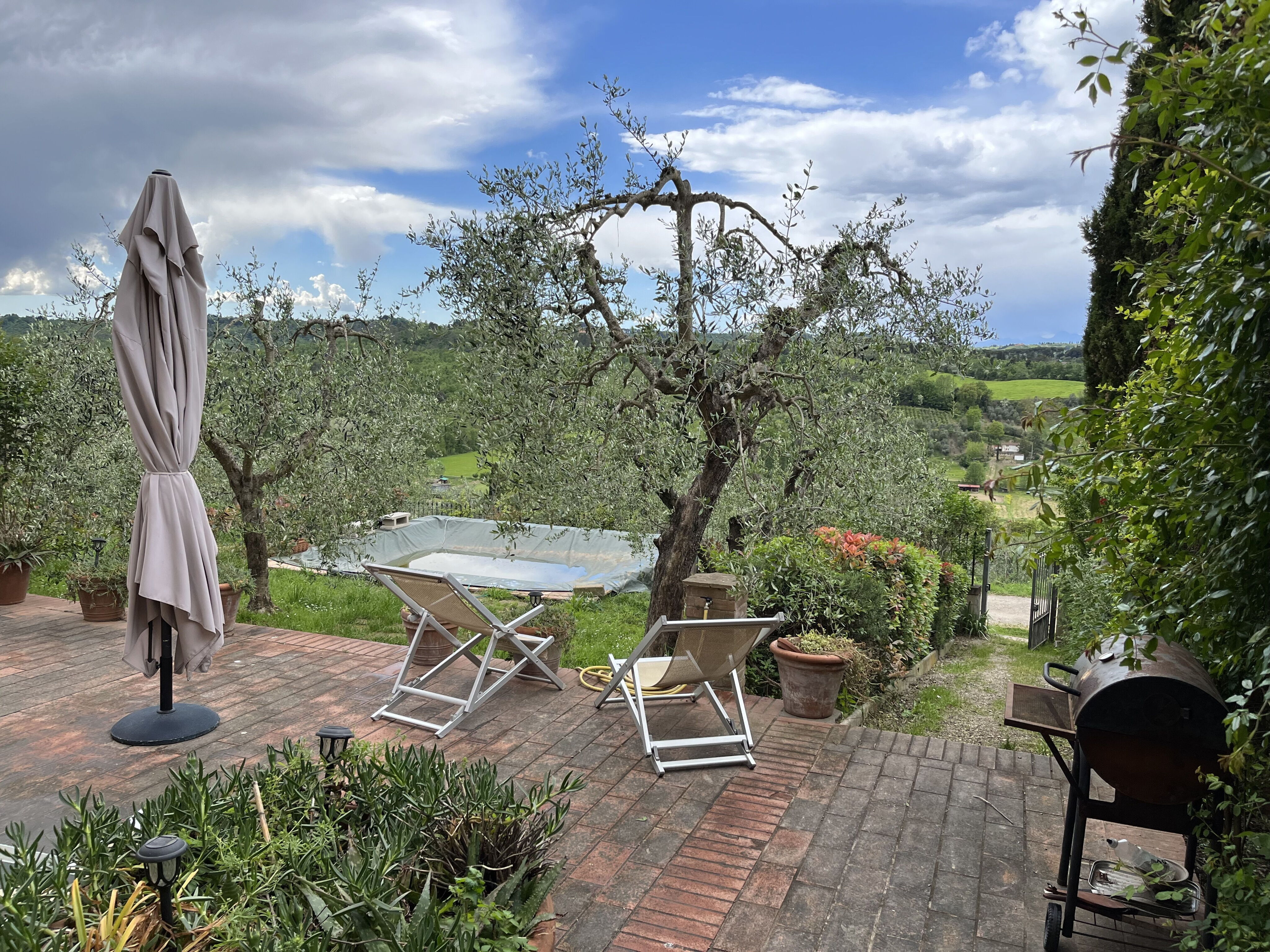 The property was perfectly placed for us to do day drops to some great Tuscan cities and towns. The position made discovering the region super easy. We were a group of 2 couples and the house was great for our group. We ate breakfasts and dinners at the house, and ate out every lunch. The two kitchens take some getting used to with a fridge in only one, and a dishwasher in the other. But we had all we needed. The outdoor space is fabulous and the views and setting are delightful.