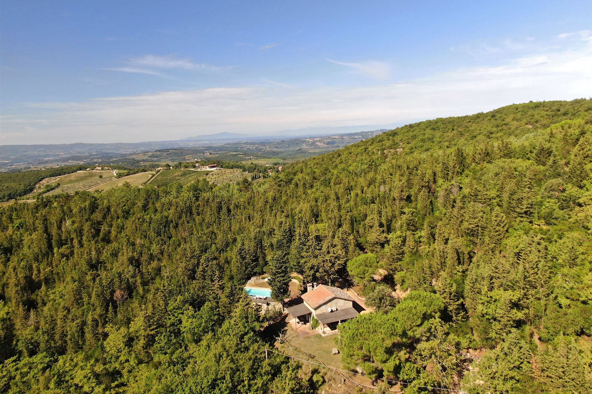 Distances: a Restaurant / Bar is located at 850 meters from the house, Castellina in Chianti (all kinds of shops) at 6 km, Poggibonsi at 14 km, Radda at 18 km, San Gimignano at 25 km, Siena at 30 km, Florence at 50 km, Pienza at 85 km, Montepulciano at 95 km, Cortona at 105 km, the Tuscan coast (Cecina or Castiglioncello) is at 100 km away.