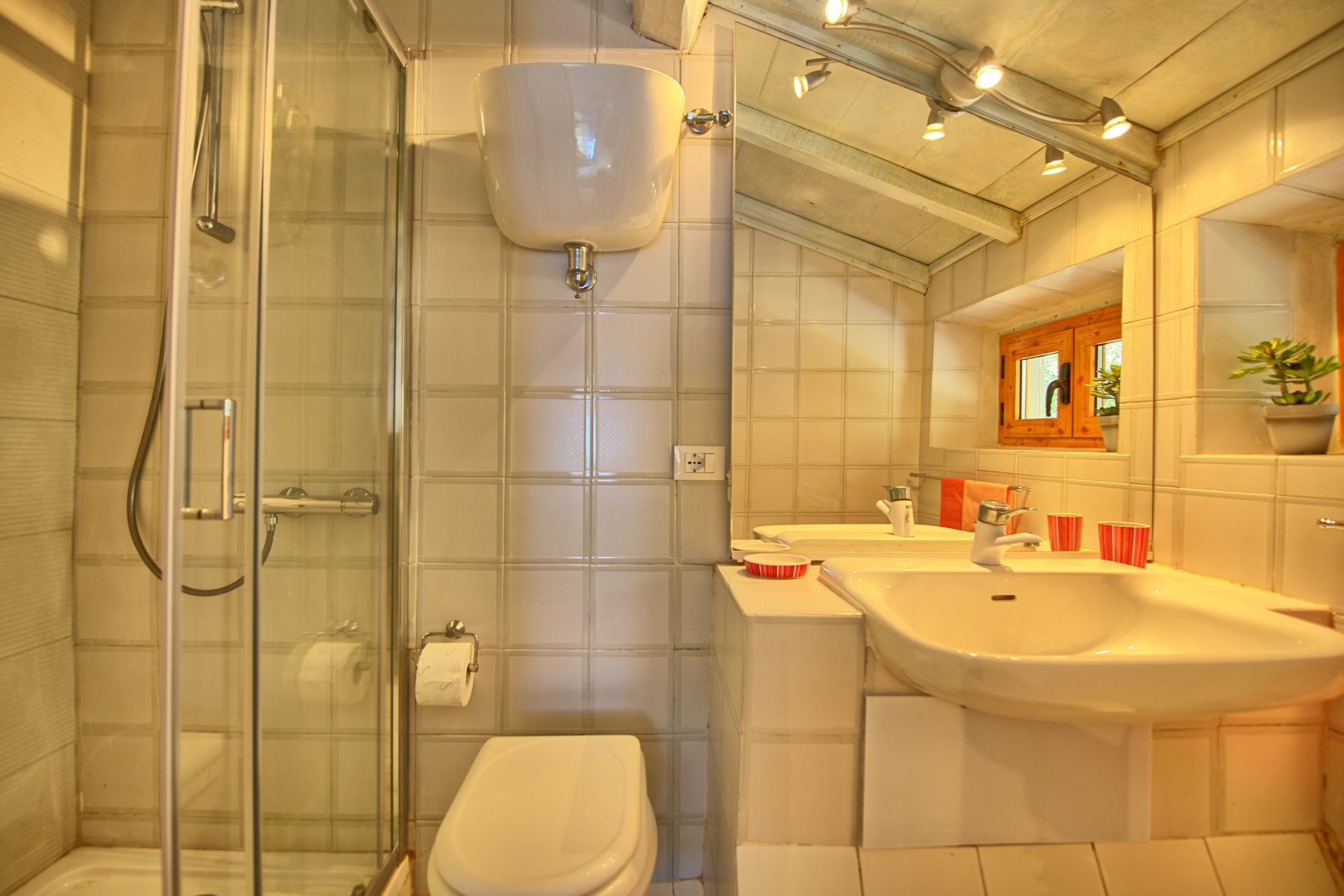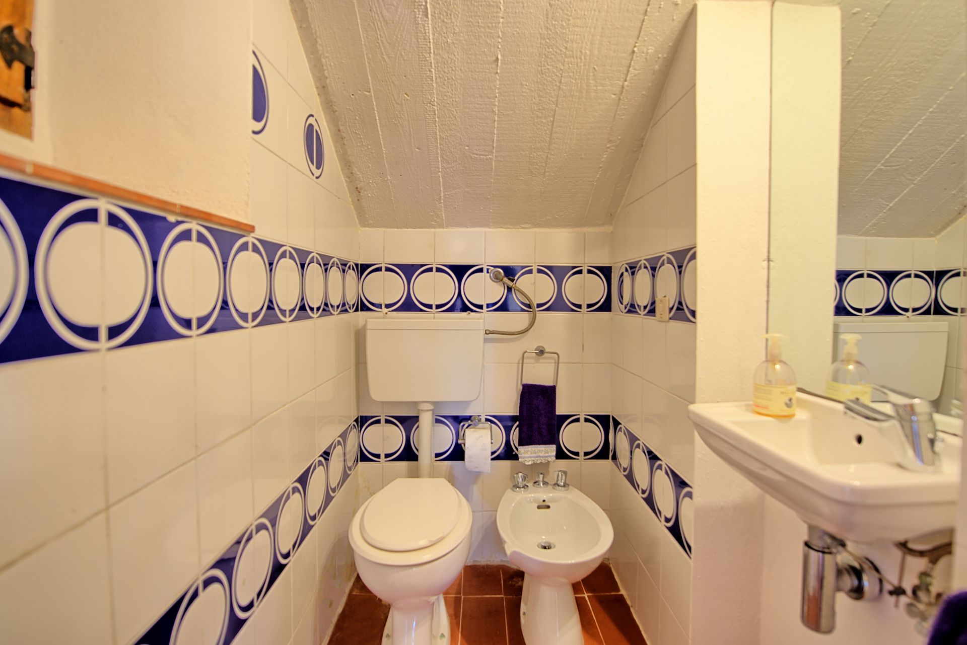First floor: small living room with double sofa bed, double bedroom (air conditioning), bathroom with shower, bedroom with 2 single beds (air conditioning) and private bathroom with shower (without bidet).