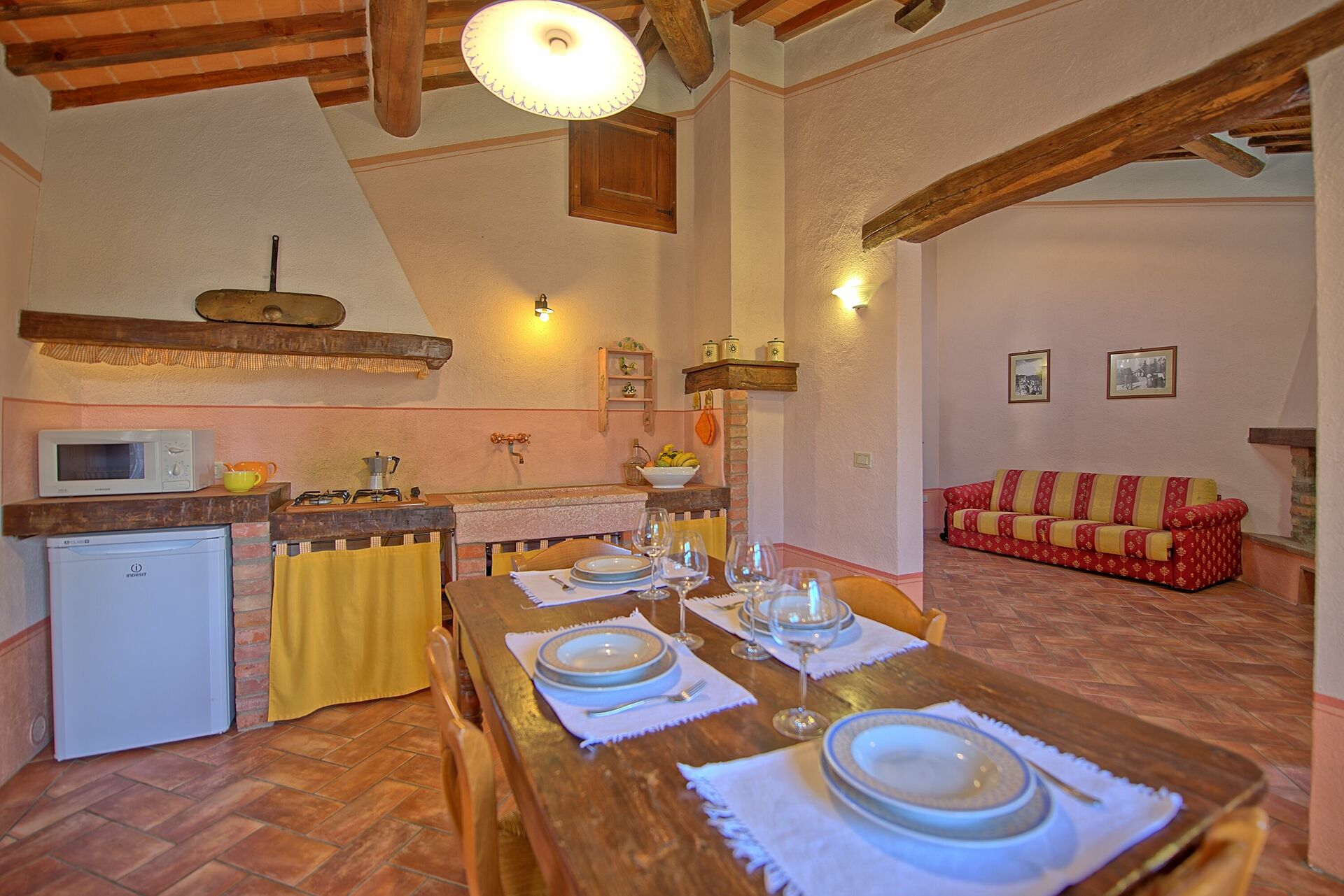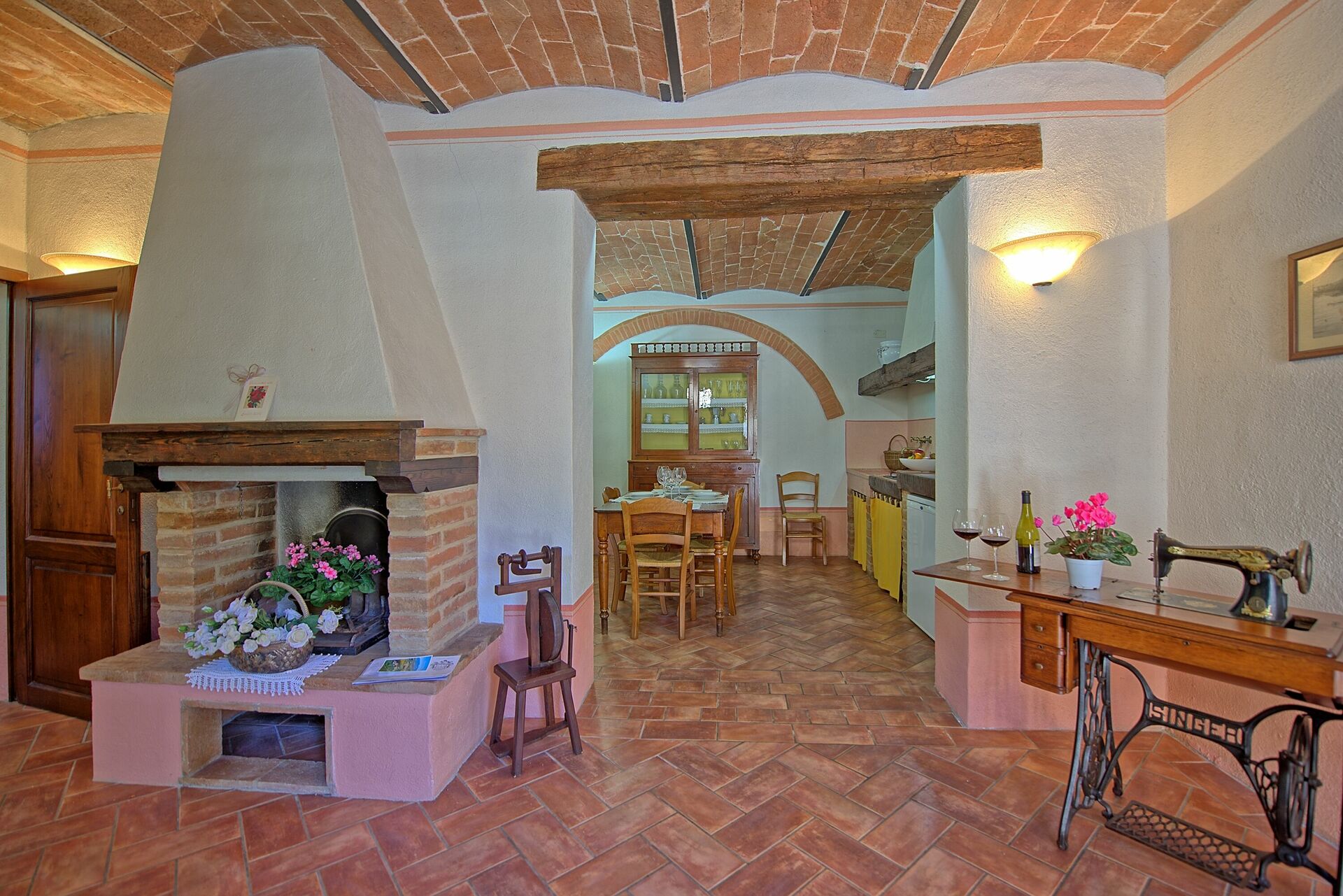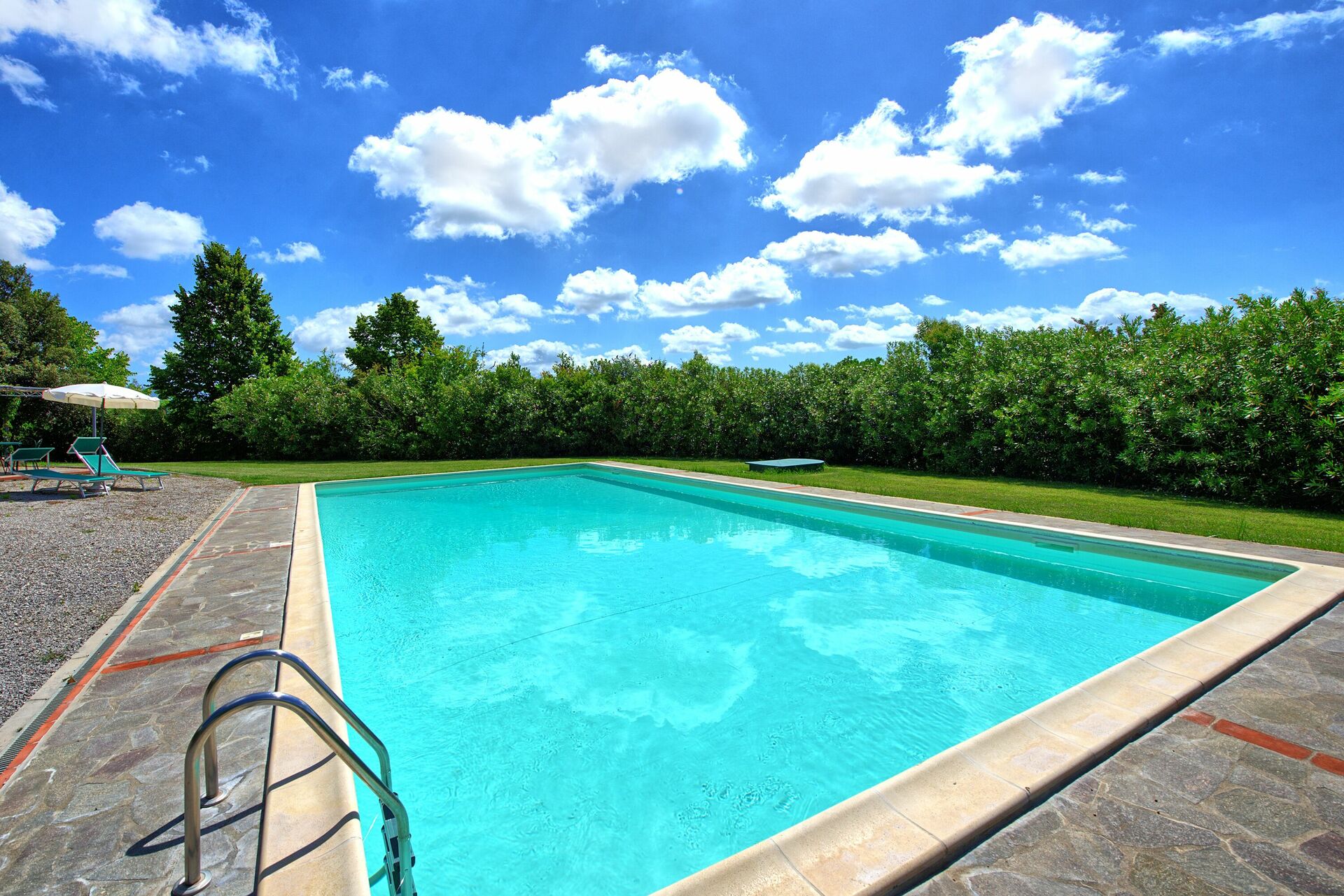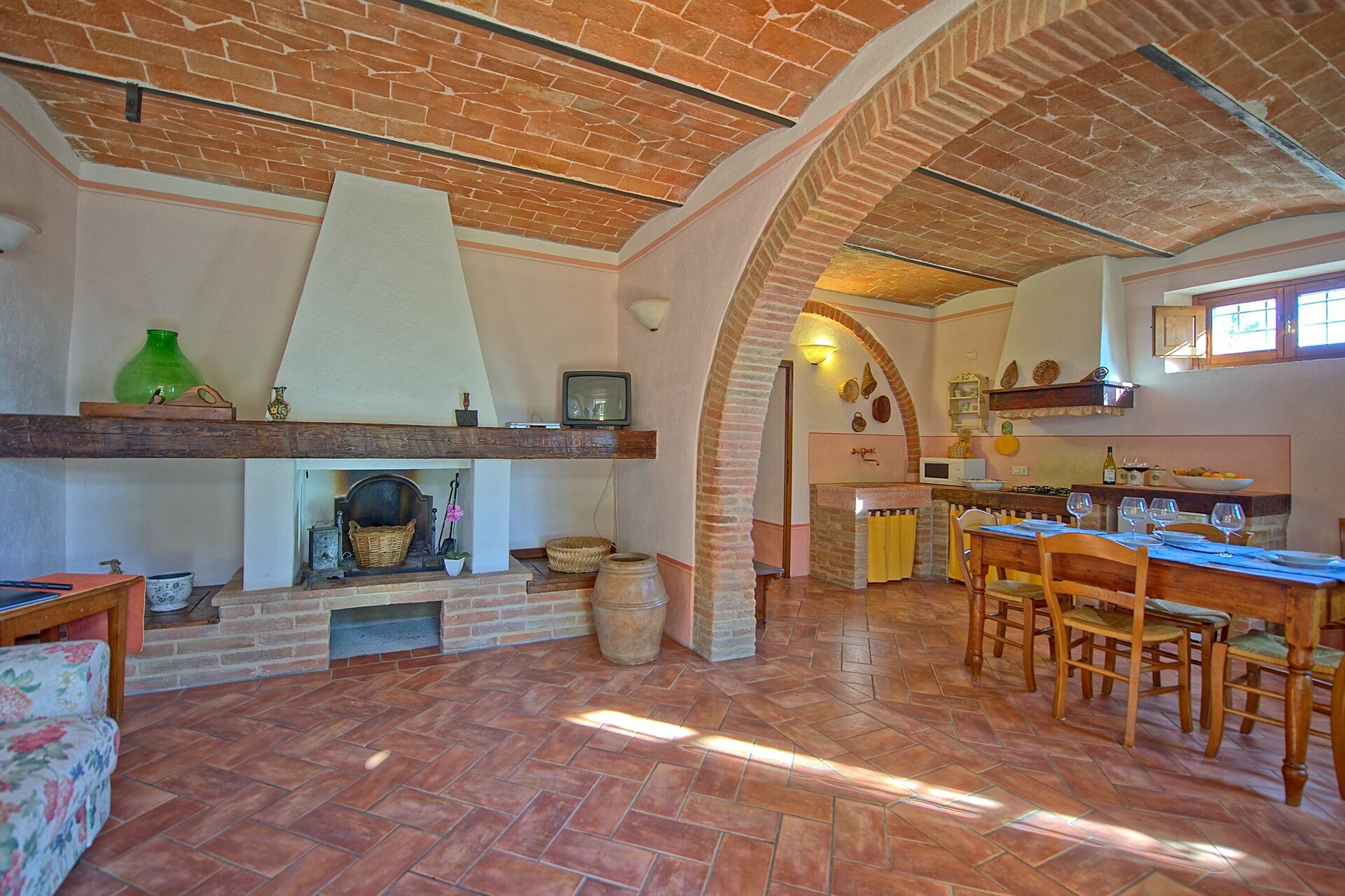 A spacious garden hugged by cypresses and other densely green trees, views of rolling hills and lush Tuscan landscapes all around, a private pool, a terracotta roof, a pretty and traditional Tuscan kitchen, charming bedrooms finished with detail and care, high exposed-beam ceilings, a nice little covered area for dining al fresco, lots of rooms with direct exits out onto the terrace... all of this and more is what you can expect from the gorgeous and wonderfully and typically Tuscan Villa La Fragola (meaning Strawberry Villa) just 500m outside the village of Chianacce, 19km (12 miles) from Montepulciano. Positioned in an especially scenic and peaceful part of the world that is ideal for those looking to get away from it all and relax on their vacation, this gem allows you to get a real taste of the charming and slow-paced life of rural Tuscany while also being ideally located just 5km from the highway and allowing easy access to many of the region’s most famous destinations and attractions. Those who choose Villa La Fragola, therefore, will get the best of both worlds – the restful escape into the dreamy Tuscan countryside and plenty of opportunities to play the serious tourist and tick some key sights off of your bucket list. In addition to Montepulciano being just 19km (12 miles) away, other nearby cities include Cortona 20km (12 miles) away, Arezzo 45km (28 miles) away, Montalcino 52km (32 miles) away, and Perugia 62km (39 miles) away.