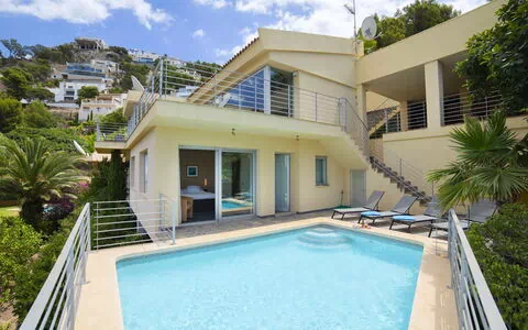 The beautiful villa "La Estrella" is a modern two-story vacation rental in Altea, Spain. It offers a well-kept garden, a seasonal swimming pool, an outdoor shower, a terrace, and a barbecue area. The property is self-sufficient in electricity production thanks to its solar panels. You can enjoy ample parking for two cars and access to an EV charging station. The villa is equipped with internet WiFi and a yard, ensuring a comfortable and convenient stay.