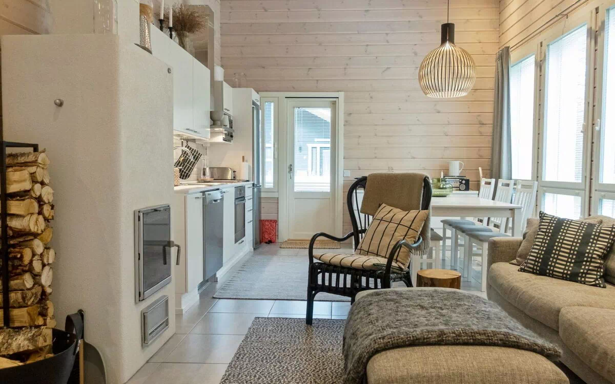Stylish and cozy apartment next to the park forest area in the middle of the peaceful area of holiday cabins. Only two hundred meters distance to the ski trails.