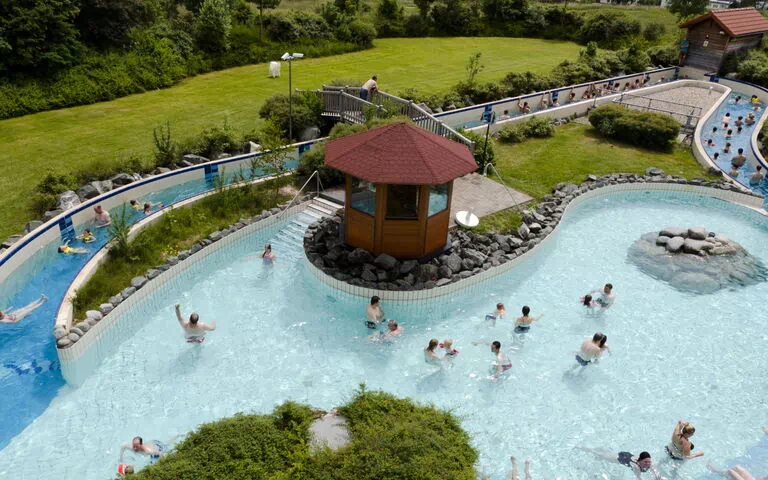 The resort is conveniently located near several attractions, including the Aventura Medebach. Popular ski regions, such as Schlossberg (6 km away), Winter-Sport Arena Sauerland (16 km away), and Mühlenkopfschanze Winterberg (19 km away), are easily accessible from the resort. In addition to the resort's facilities, guests can enjoy the subtropical fun pool "Aqua Mundo" (free of charge) with indoor and outdoor pools, slides, a wave pool, and a "Water Playhouse". The covered "Market Dome" serves as a central meeting point, offering various restaurants, cafes, shops, and indoor leisure activities, including a football arena with a football school (extra cost), the House of Games, and an activity program called "Wannabe" for younger children. Minigolf, archery, and climbing are other parts of the resort's extensive entertainment offerings (some facilities may require additional fees).