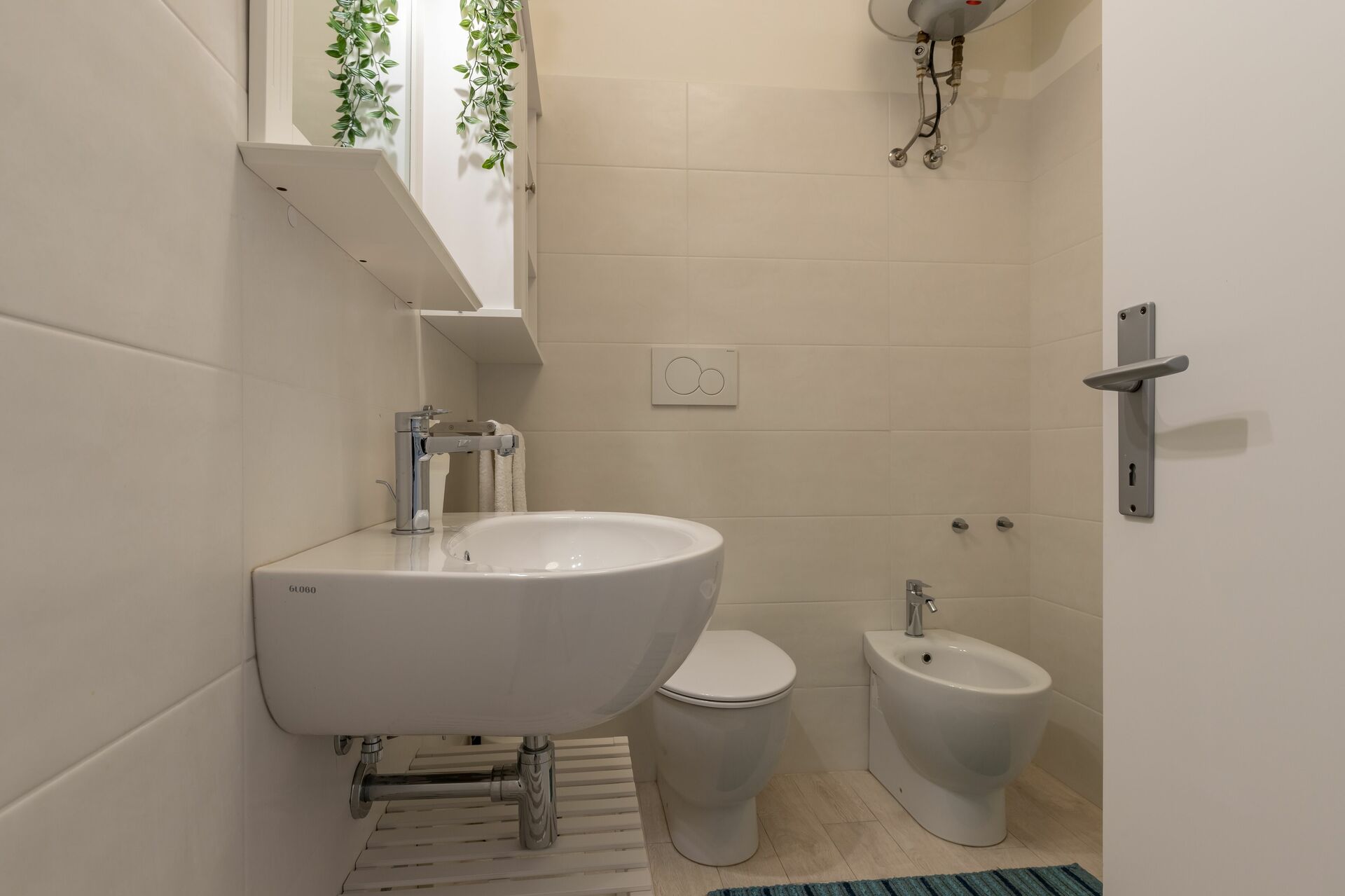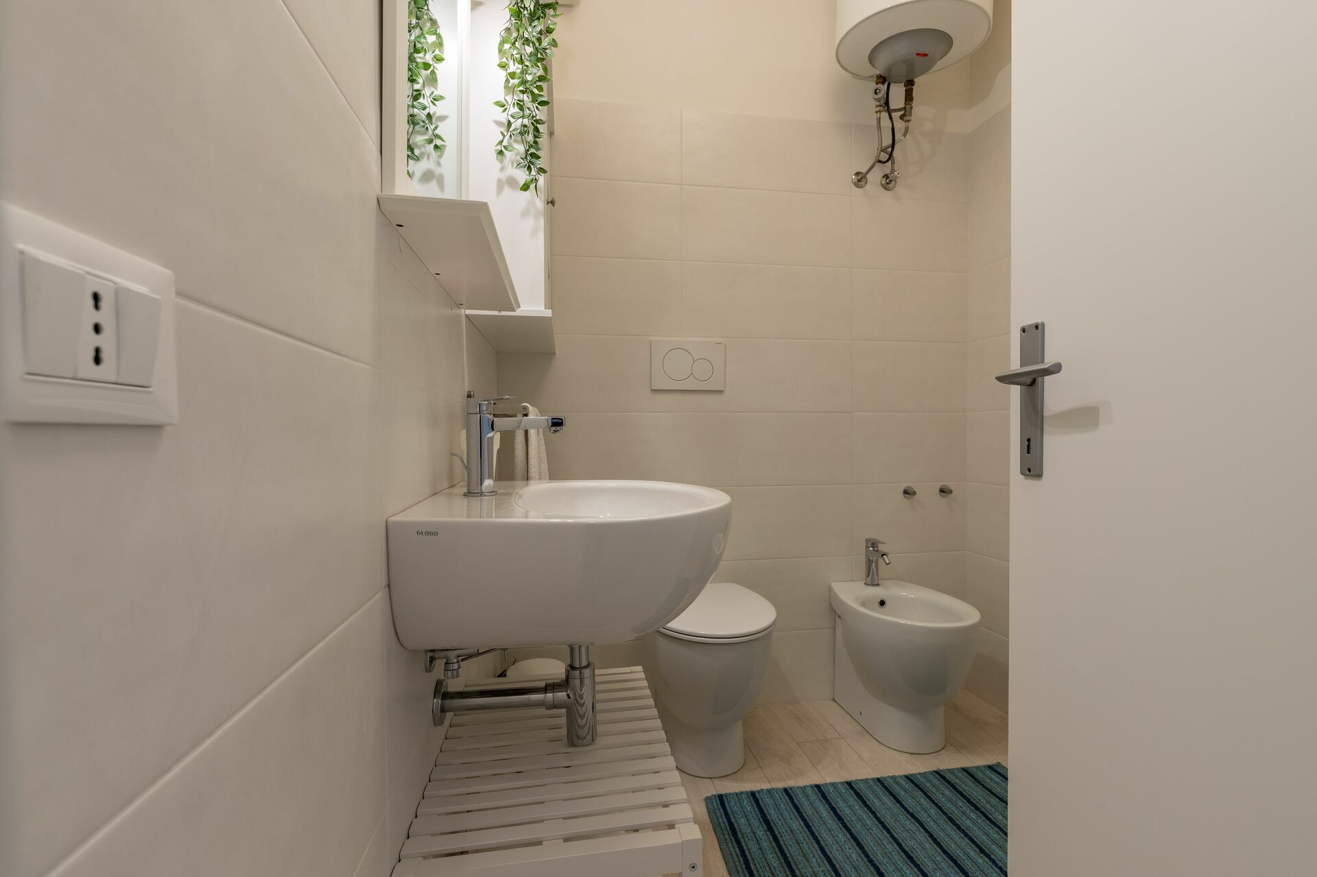 Bathroom (8 m2): basin, toilet, bidet, shower, hairdryer.