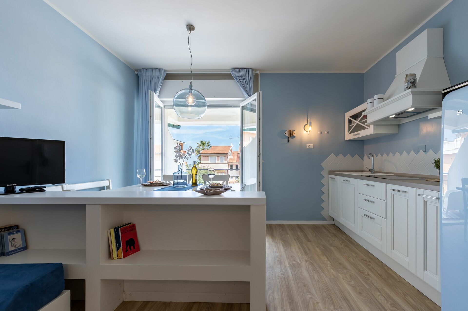 After arriving at Conero Suite you’ll find a lovely clean well-maintained property with views of the city and the sea ideal for a splendid holiday in The Marches. After a hectic day of shopping, spend some time with friends and family enjoying a glass of wine - a perfect way to relax at the end the day. Dining with friends and family is a huge part of the Italian culture. Take advantage of the well-equipped kitchen to prepare meals using local produce while on your holiday. The kitchen includes coffee machine, microwave, toaster, stove and refrigerator, as well as, plenty of tableware and cutlery for up to four people. Dine 'al fresco' like a real Italian, the fully furnished balcony is the perfect setting to enjoy food, family and the lovely Italian weather.