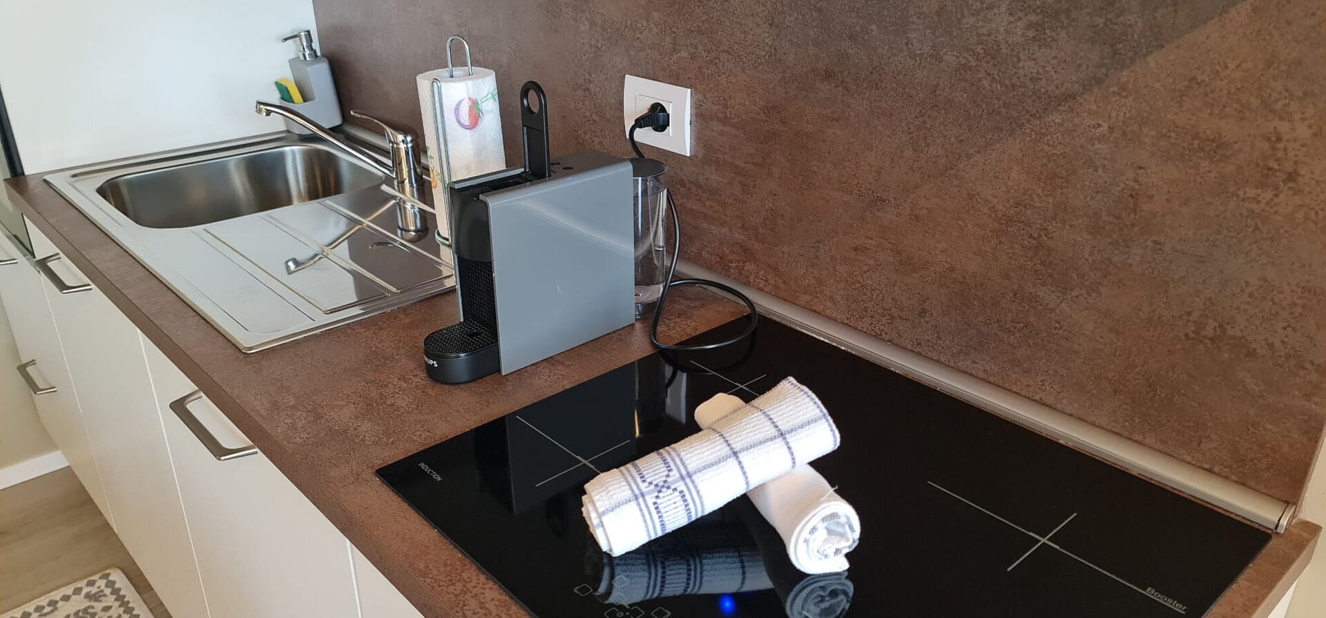 Open space: dining table, sofa bed double, WIFI internet, internet, air conditioning, satellite tv, television, mosquito net, fridge, washing machine, freezer, dishwasher, dryer, well equipped kitchen, microwave, oven, italian coffee machine.