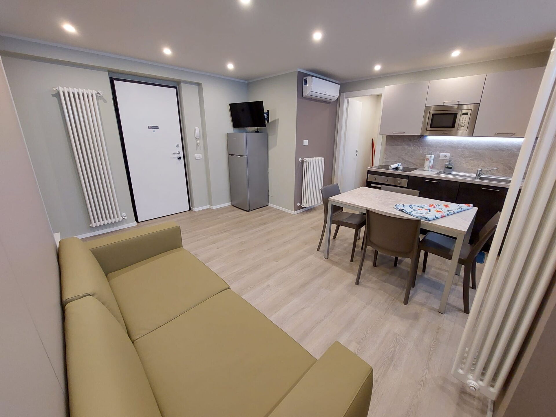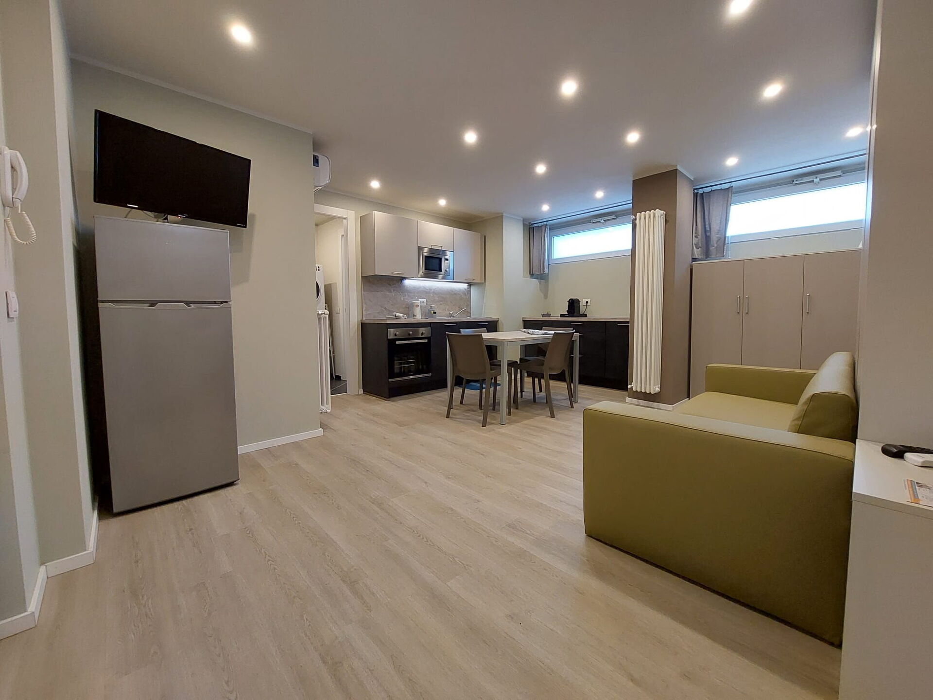 Open space: working desk, dining table, sofa bed double, WIFI internet, air conditioning, satellite tv, fridge, stove top, washing machine, freezer, microwave, oven, italian coffee machine.
