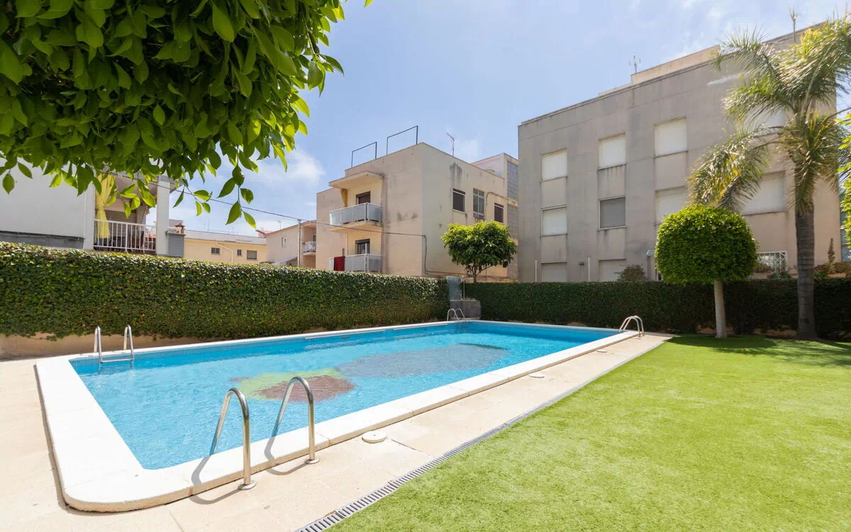 Comfortable apartment block "Girona" in Cubelles, Spain, offers a vacation rental with a shared swimming pool and Internet Wifi amenities. The property is centrally located, just 100 meters from the sea and beach.