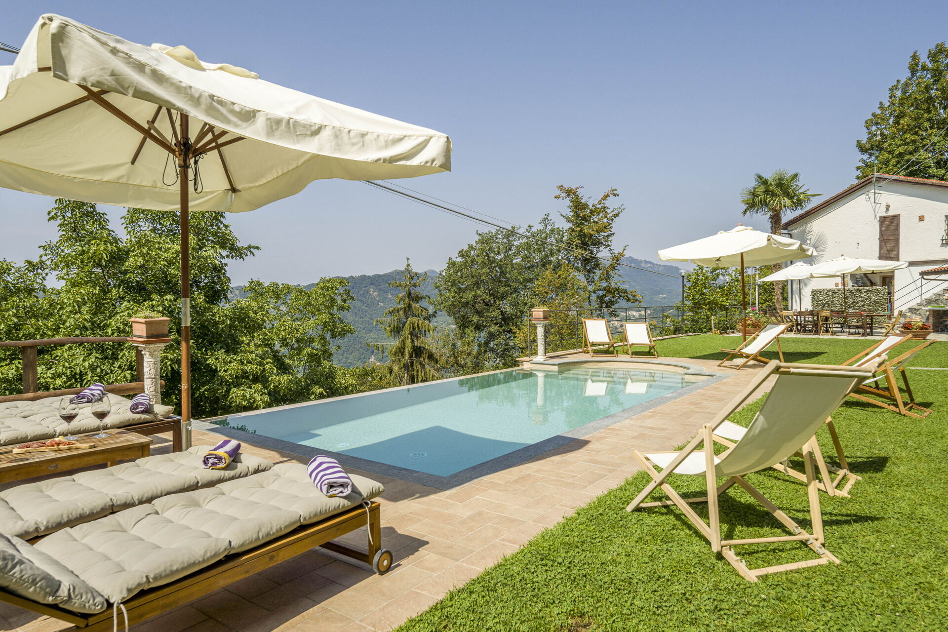 After arriving you will be greeted by the owner or manager where you’ll find a lovely clean well-maintained property with views of the hills ideal for a peaceful holiday in Liguria. Regardless of how you spend your days - visiting museums, sightseeing, shopping or just driving in the countryside, when you arrive home you can unwind with your family and friends at the pool for a perfect ending to another day in Liguria. Dining with friends and family is a huge part of the Italian culture. Take advantage of the well-equipped kitchen to prepare meals using local produce while on your vacation. The kitchen includes coffee machine, microwave, stove and refrigerator, as well as, plenty of tableware and cutlery for up to 16 people.
