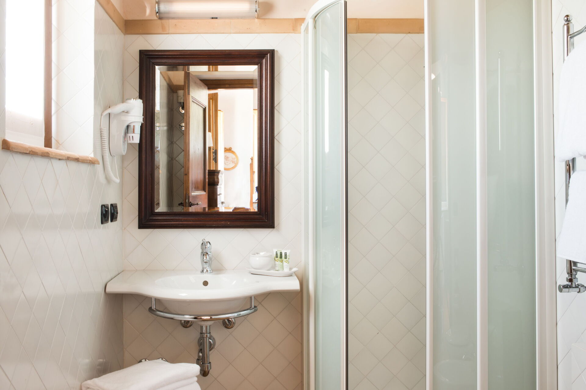 Bedroom + Ensuite Bathroom 3 (22 m2): double bed (length: 1.8m, width: 2m), WIFI internet, air conditioning, satellite tv, safe, fridge, basin, bidet, shower, hairdryer.