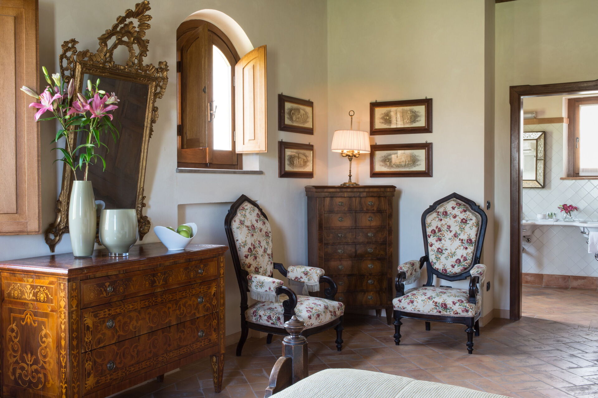 Bedroom + Ensuite Bathroom 1 (35 m2): double bed, WIFI internet, internet, air conditioning, satellite tv, armchair, working desk, safe, fridge, whirlpool bathtub, double basin, toilet, bidet, shower, hairdryer.