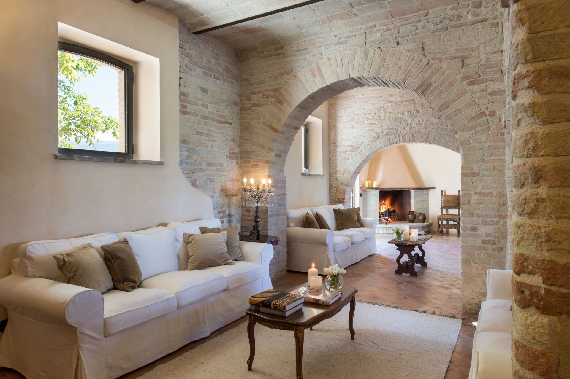 Living room (40 m2): sofa, three armchairs, fireplace, dining table, WIFI internet, air conditioning, exit to the terrace.