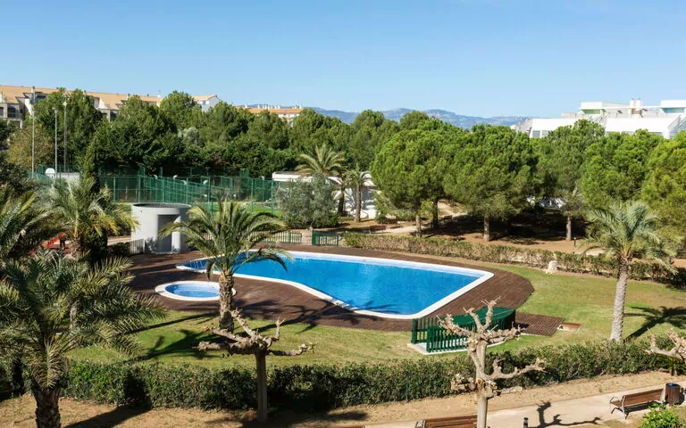 The Panoramica Golf apartment block is surrounded by trees and comprises 50 houses within the residence. It provides amenities such as a lift, air conditioning, and a communal washing machine. Covered parking is available for shared use. Additionally, there is a supermarket, restaurant, and bar located just 300 meters away, making it convenient for your daily needs.
