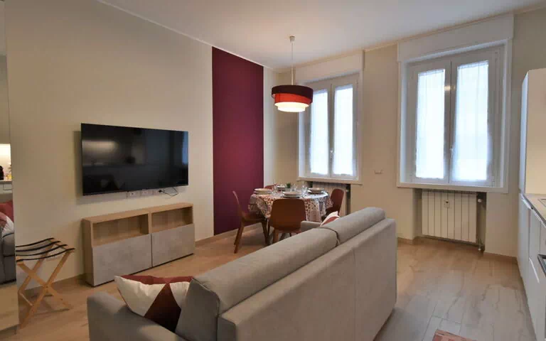 This formal vacation rental, the "Pirelli Central Station Apartment," is a comfortable apartment housed within a six-story building located just 700 meters from the center of Milan, Italy. It offers amenities such as Internet Wifi and is situated in the Gioia/Stazione Centrale district, a busy residential area. The apartment building features a lift, central heating system (operational only from October 15 to April 15), and public parking available on the street for an extra charge.