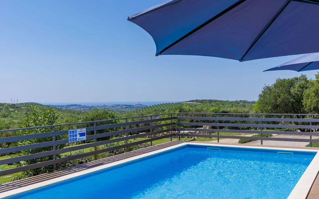 Villa Selagodi is a beautiful single-family house situated in Rovinjsko Selo, just 1.3 km from the center and 6 km from Rovinj, Croatia. This vacation rental boasts a private property of 4,000 sq.m, complete with a fenced yard, trees, and a meadow. Enjoy the stunning angular swimming pool (depth 150 cm, available seasonally from March 1 to October 31) and outdoor amenities like a shower, badminton court, terrace (40 sq.m), garden furniture, and a barbecue area with a swing. The property also offers internet WiFi, a washing machine, and parking for up to 4 cars on the premises.