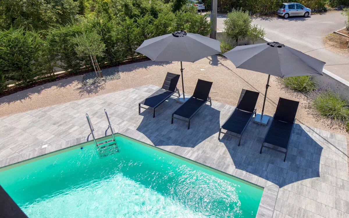 Villa Nika boasts a private outdoor space spanning 250 m2, enclosed by a fence. This area features a wildlife garden, creating a serene and natural ambiance. The highlight of the outdoor area is the heated swimming pool, measuring 24 m2 with a depth of 140 cm, available during the seasonal period from April 20 to October 15. The pool utilizes a salt-electrolysis cleaning system, ensuring a refreshing and hygienic swimming experience. Additionally, the pool area showcases an unconventional shape, adding a touch of uniqueness to the design. Enhancing the outdoor experience, Villa Nika offers an outdoor shower, a hot tub, and a barbecue area, providing ample opportunities for relaxation and al fresco dining.