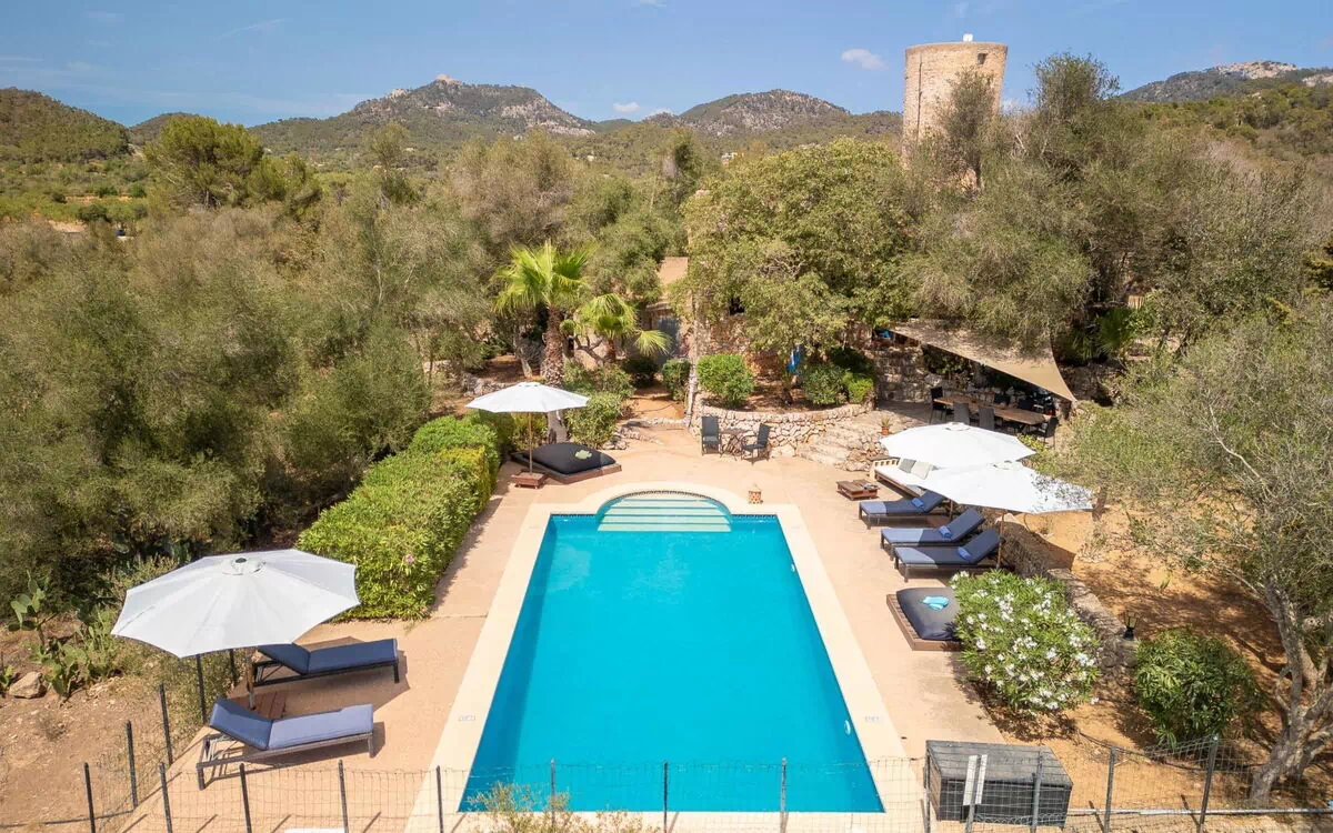 The farmhouse is suitable for families and can accommodate up to 9 adults comfortably. Please note that it is a non-smoking house. Some sleeping areas are located in an open-plan area, such as a gallery or alcove. The property offers panoramic views of the mountains, countryside, and the ocean. The floors are made of natural stone, adding to the rustic charm of the accommodations. Just an example, the property is named "Moli de sa Cova", and it allows a maximum of two pets or dogs during your vacation stay.