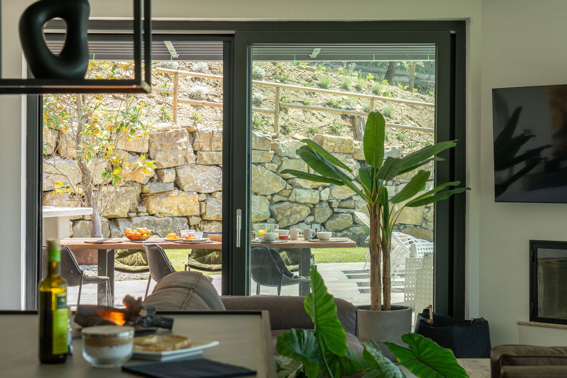 Open space: two sofas (people: 8), fireplace, dining table (people: 10), WIFI internet, air conditioning, satellite tv, television, fridge, stove top, freezer, dishwasher, iron, well equipped kitchen, microwave, oven, toaster, italian coffee machine, american coffee machine, exit to the garden.