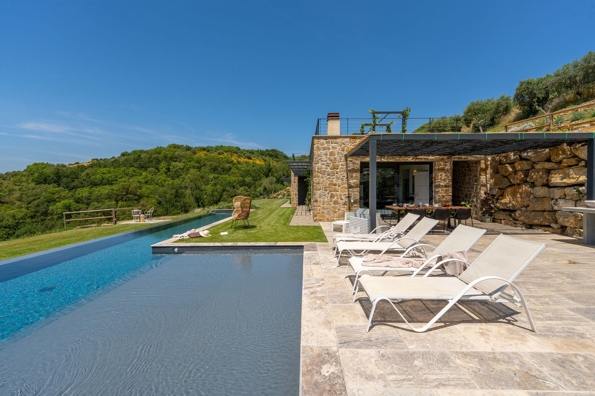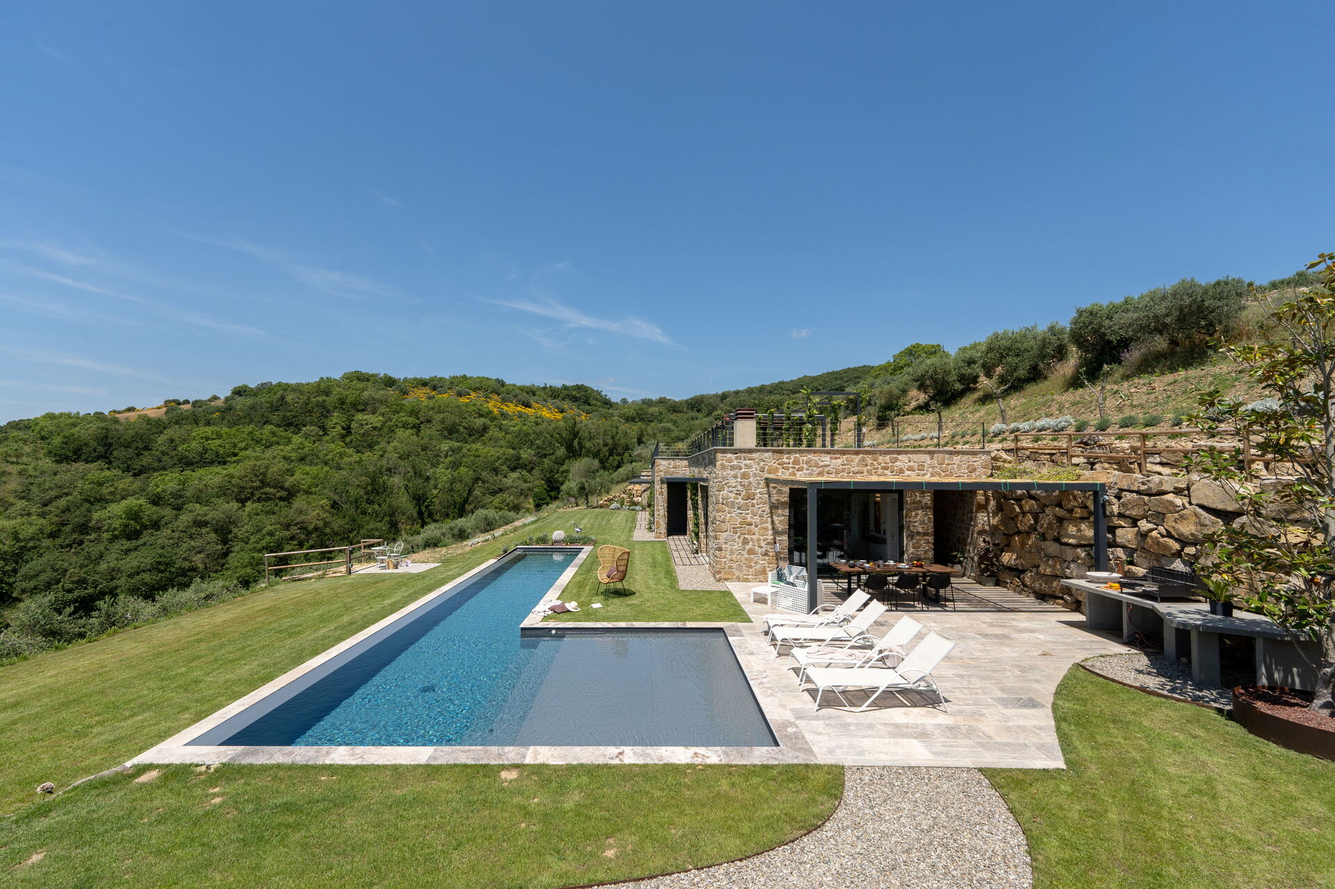 Garden: swimming pool (private, length: 2.7m, width: 16.5m, depth: 1.5m, outdoor, heated), shower, WIFI internet, barbecue, al fresco dining, dining table (people: 10), garden furniture, sunbed, enclosed property.