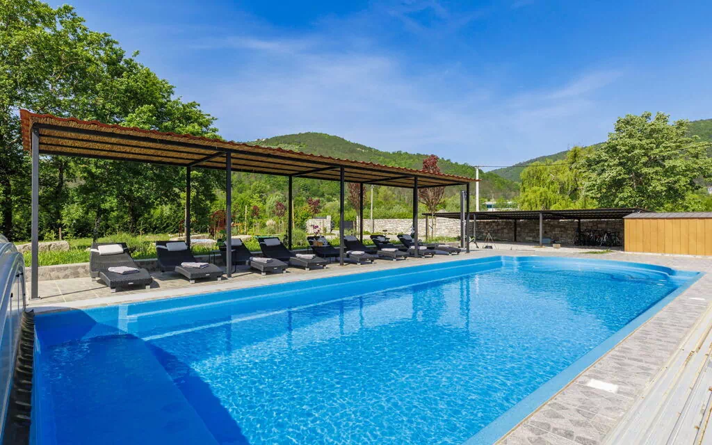 The villa is situated 5 km from Motovun and 10 km from the center of Buzet, Croatia. It's nestled in the countryside, 30 km from the sea and the center of Novigrad. Nearby attractions include an Aquapark located 14 km away, offering fun water activities for the whole family. Additionally, the property's proximity to walking paths and a cycle lane provides ample opportunities for exploring the surrounding natural beauty.