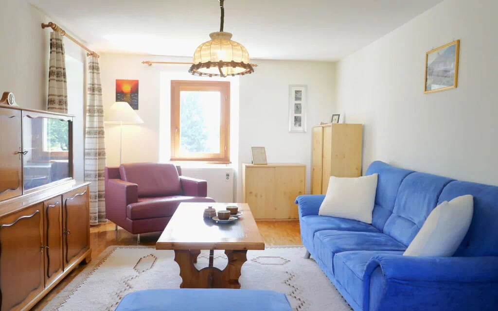 Grono, Switzerland: Casa Calanca is a simple and comfortable detached single-family house situated in a sunny, elevated position in the district of Val Mesolcina. This two-story property offers a yard, Internet WiFi, and is surrounded by meadows, making it an ideal vacation rental for those seeking a tranquil escape amidst nature.
