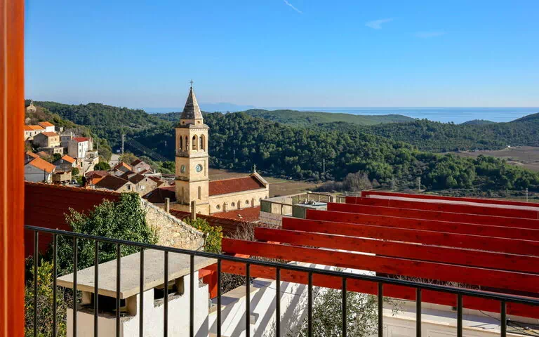 Villa Prusina is a charming terraced house offering a private swimming pool, internet WiFi, and parking facilities. Situated in a sunny, elevated position just 3.5 km from the sea and beach in Smokvica, Croatia, this two-story holiday rental promises a delightful stay.