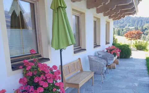 Situated in a secluded position on a sunny slope, the farmhouse enjoys a peaceful countryside setting outside the main resort area. The property includes an estate where animal husbandry takes place, adding to its authentic farm atmosphere. During winter months with adequate snow coverage, guests can access the property directly on skis.