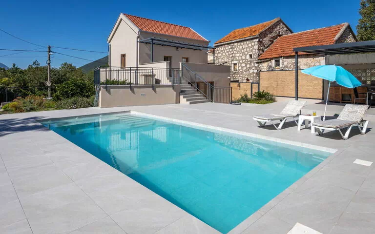 Modern, beautiful single-family house "Josipa" offers an exceptional holiday rental experience in Škulja, Croatia. Located 1 km from the centre of Vrgorac, this property is situated in a quiet, sunny position, 31 km from the sea and 31 km from the beach. The house features internet access with WiFi connectivity throughout, ensuring you remain connected during your stay. Private parking for 2 cars is conveniently available at the house on the premises. The property boasts a private angular swimming pool measuring 9 x 4 m with a depth of 150 cm and a surface area of 36 m2, available seasonally from 01.May. through 01.Oct., complete with an internal staircase for easy access.