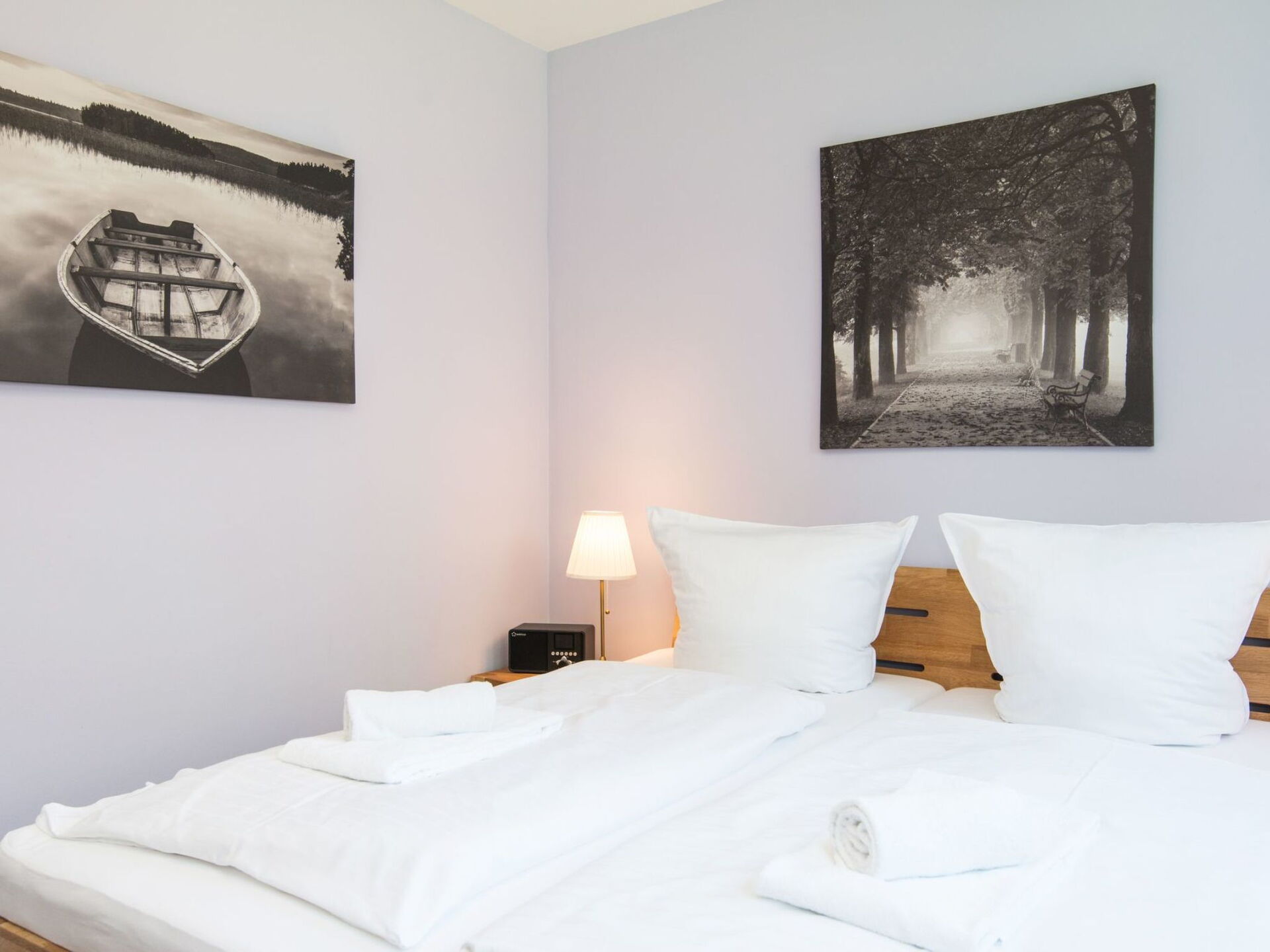 The outdoor area of the holiday home with its beautiful terrace invites you to linger and relax. You can spread out and unwind in the shared garden. A charging station is available for guests travelling with an electric car. Bicycles can be safely stored in a covered and lockable storage area. Enjoy the fresh air and idyllic tranquillity to the full here.