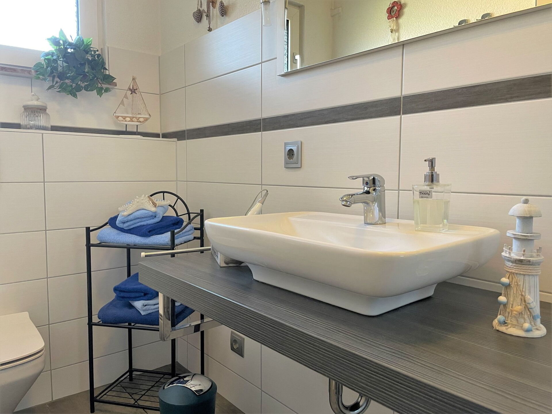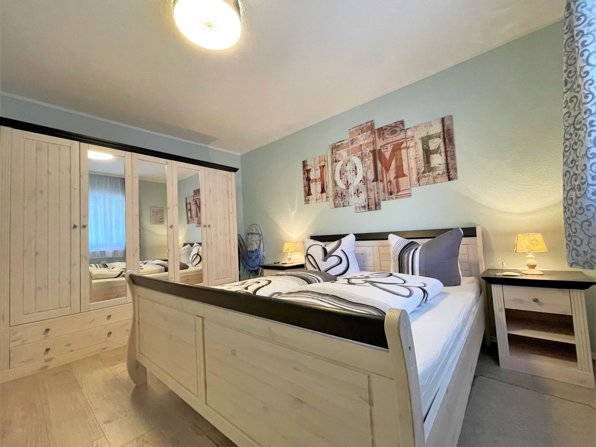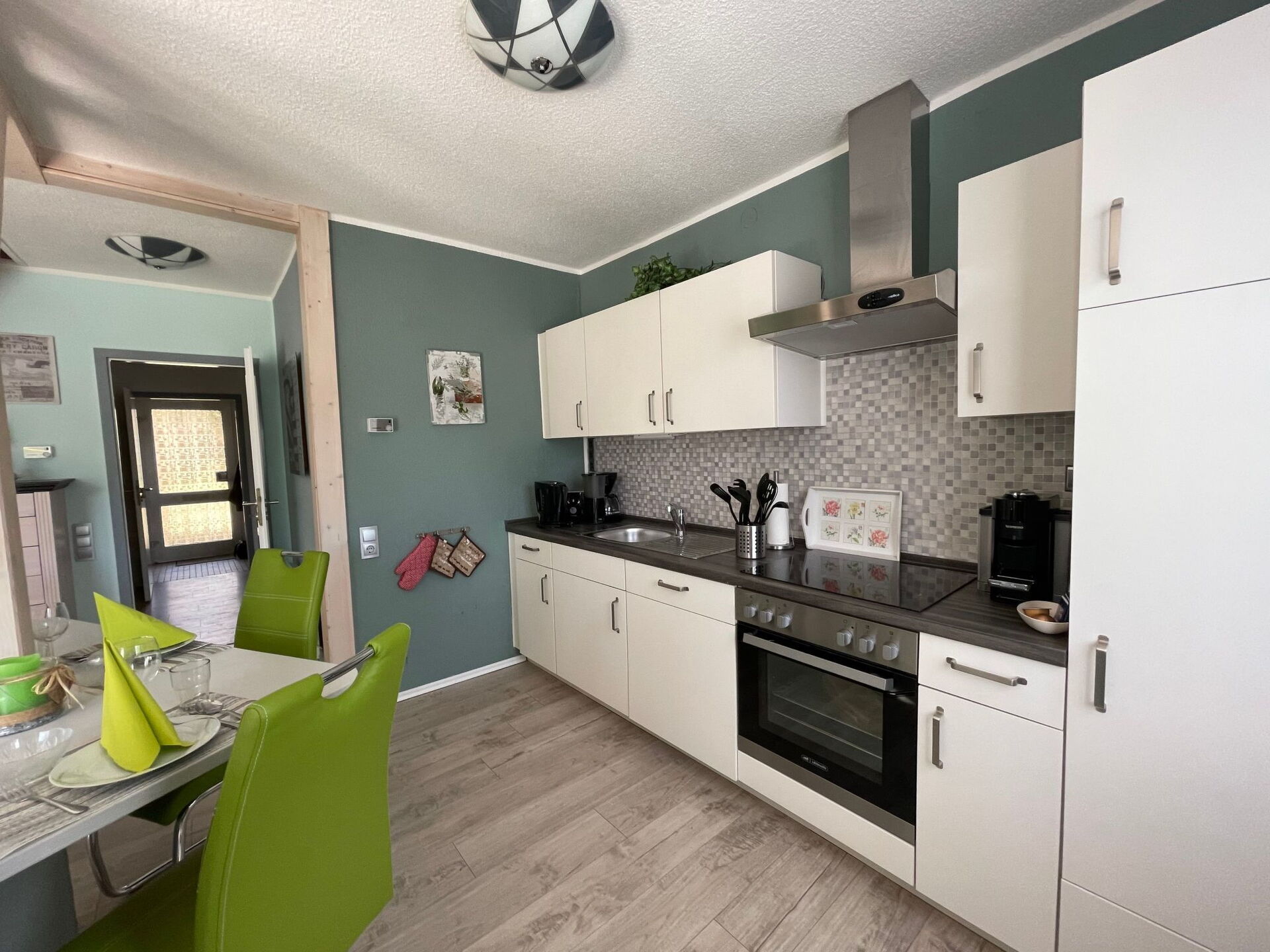 The house can accommodate four people and one child. The two floors provide everything you need for a relaxing holiday. The ground floor has a big living and dining room with satellite TV (including USB port) and a fully-equipped kitchen separated off spatially by beams, a big bedroom with a double bed (180 x 200cm), and a bathroom. The other two bedrooms are on the upper floor, one with a single bed (90 x 200cm) and a balcony, and one with two single beds (90 x 200cm). The kitchen is equipped with a stove, oven, coffee machine, dishwasher and fridge with freezer compartment. Wireless Internet access is available throughout the house. The house has night storage heating.