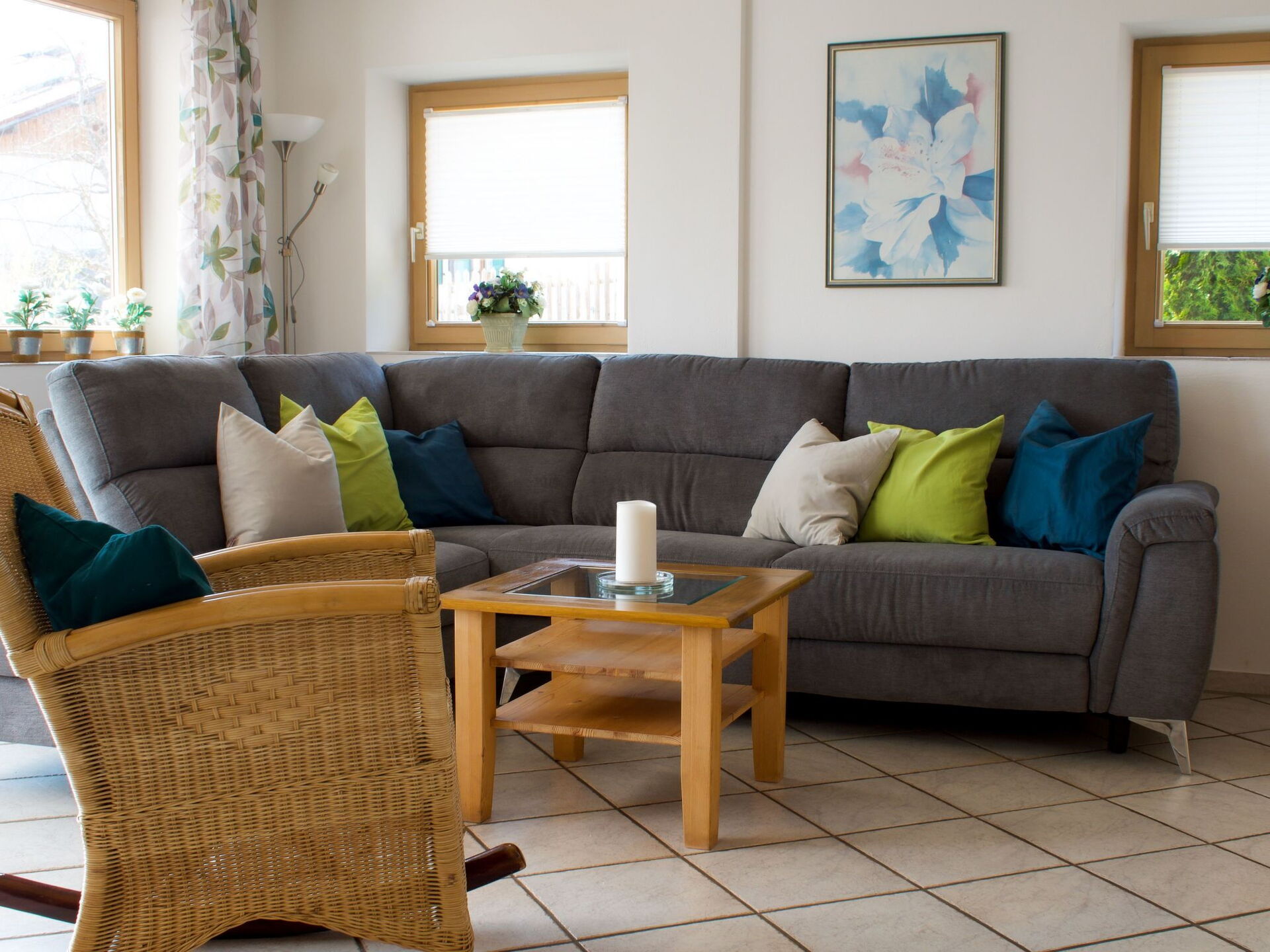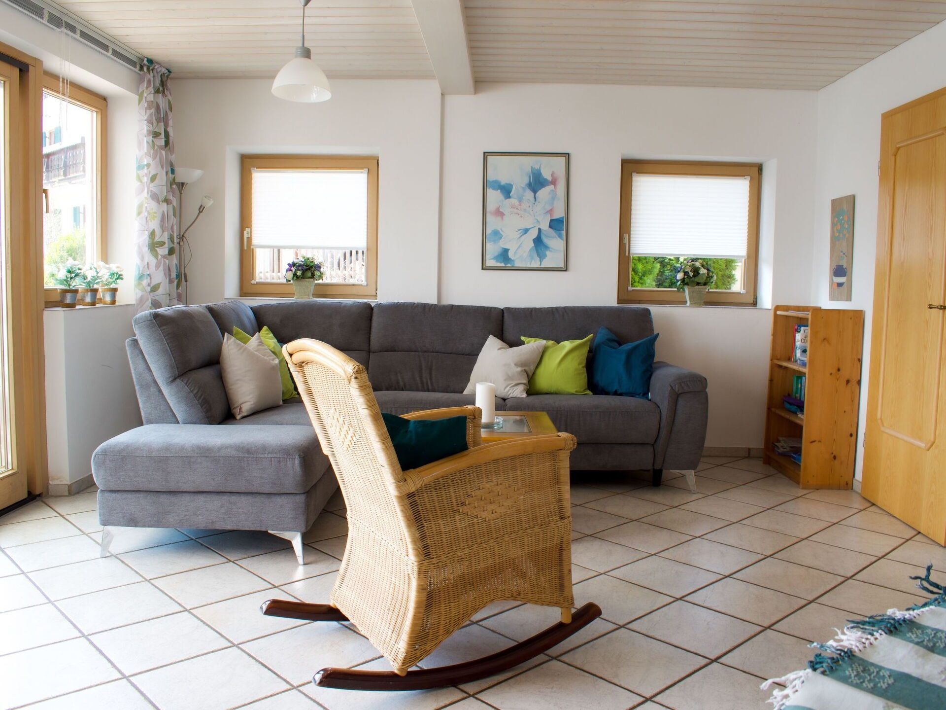 Beautiful holiday home with mountain views, balcony and terrace below the golf course in a top location! The Fischer holiday home in the Allgäu is a separate annex. It has two bedrooms and can accommodate four people. A washing machine is available in one of the two bathrooms.in the kitchen with dining area you will find all the necessary utensils as well as a microwave, coffee machine and toaster for a cosy breakfast.you can enjoy the wonderful mountain view from both the balcony and the terrace with sun loungers.you can golf heavenly at the golf course Auf der Gsteig 200m away and on the golf course Stenz Bernbeuren at Haslacher See 6 km away. The holiday resort of Lechbruck am See offers bathing, swimming, hiking, cycling, sailing and much moreShort descriptionOther : Non-smoking houseShort description 1Number of kitchens : 1Living room 1Other living room furnishings : Rocking chairBedroom 1Other bedroom furnishings : Wardrobe, chest of drawers, bedside cabinets, access to bathroom with WC, balconyBedroom 2Other bedroom furnishings : Wardrobe, bedside cabinets, balconySurroundingsLeisure facilities : Car hire, bike hire, ski, snowboard or sledge hireSports facilities in the area : Basketball, Mountaineering, Football pitch, Ice skating, Golf course, Hunting, Canoeing, Climbing, Mountain biking, Paragliding, Cycling, Rafting, Riding stables (guests), Indoor riding arena, Riding arena / riding possibilities, Tobogganing, Rowing, Sailing, Cross-country skiing, Alpine skiing, Sports centre, Squash, Surfing, Diving, Tennis, Water skiingSurroundings 1Excursion possibilities : Lechbruck's location on the lake in the middle of the gently rolling Alpine foothills within sight of the Alps and its above-average infrastructure give it a special holiday appeal. Almost all sports and leisure facilities are located along the long Lech riverside path: A roller-skating rink, mini-golf and an adventure playground for children are popular excursion destinations. In addition to kayaking, sailing and surfing, the lake also invites you to go on inflatable boat tours. There are plenty of hiking opportunities around Lechbruck, and the beautiful natural surroundings can also be discovered by bike.Location description : The idyllic former rafting village of Lechbruck am See lies in the land of the fairytale castles of King Ludwig IISOther sports and leisure facilities : raft trips, ice hockey, adventure minigolf course, pedalo hire