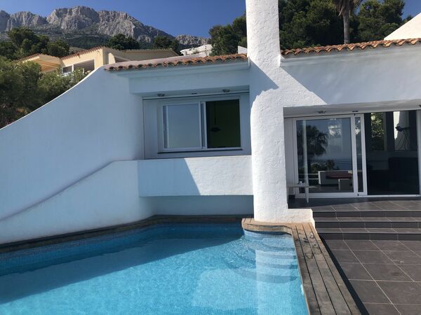 This elegant villa, Palm Spring, offers a serene escape nestled in the tranquil Altea Hills district, just 7 km from the vibrant center of Altea and 4 km from the sea. The sprawling 1,800 m2 property boasts a beautifully landscaped terraced garden, a seasonal swimming pool with an unconventional shape and internal staircase, a terrace with garden furniture, and a barbecue area. Enjoy the convenience of air conditioning, a burglar alarm system, and a single garage. With Internet WiFi, parking, and a tennis court nearby, this vacation rental provides the perfect blend of luxury and convenience.