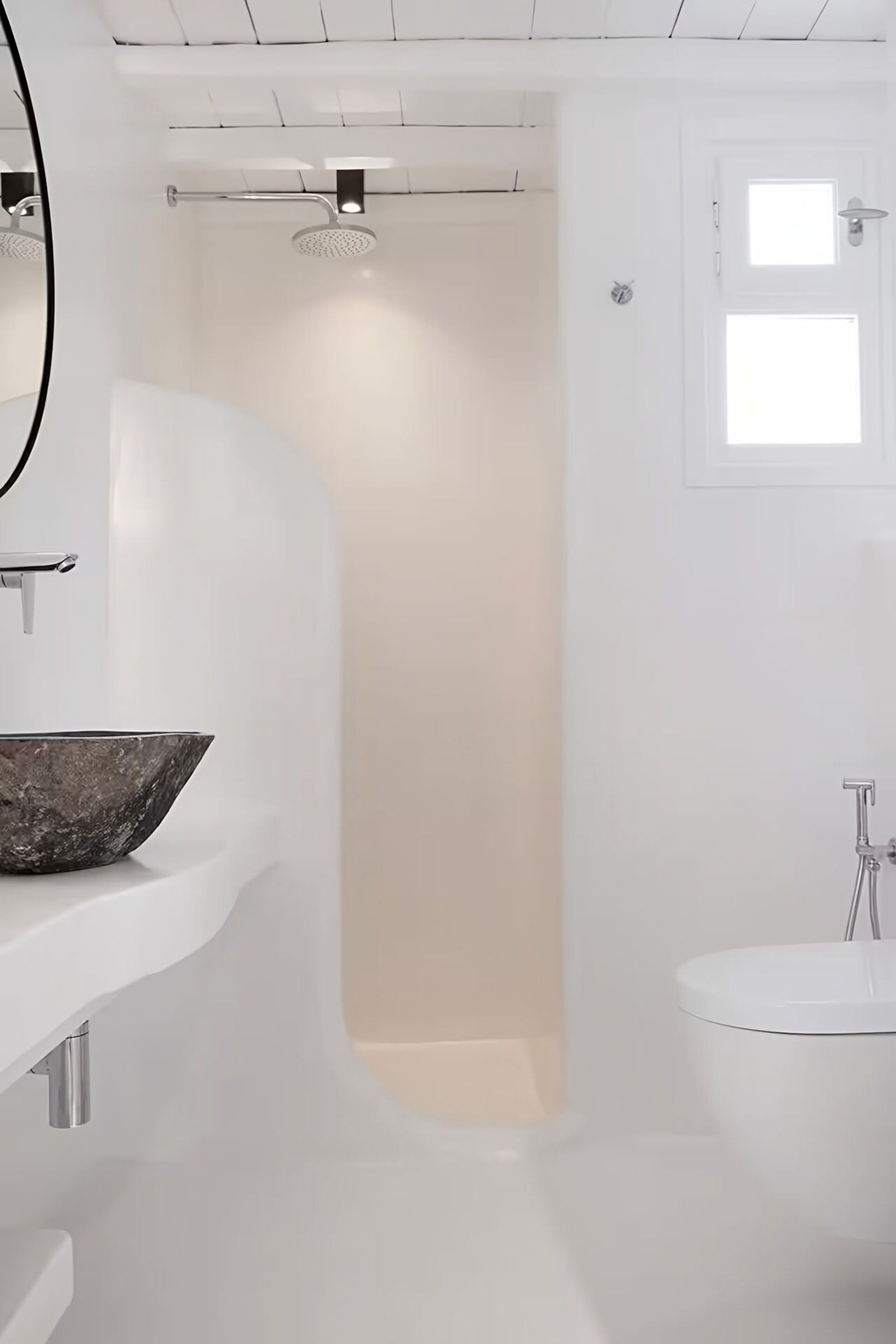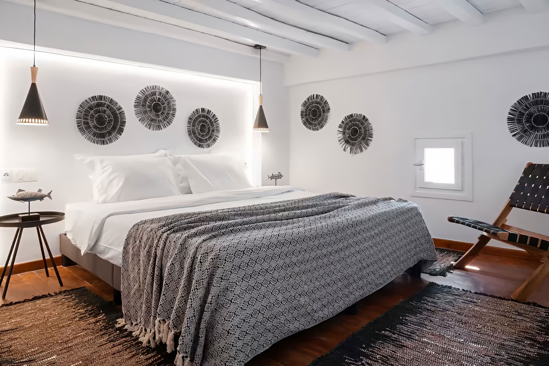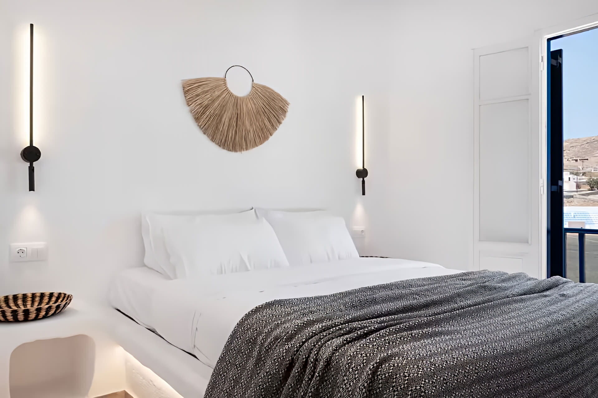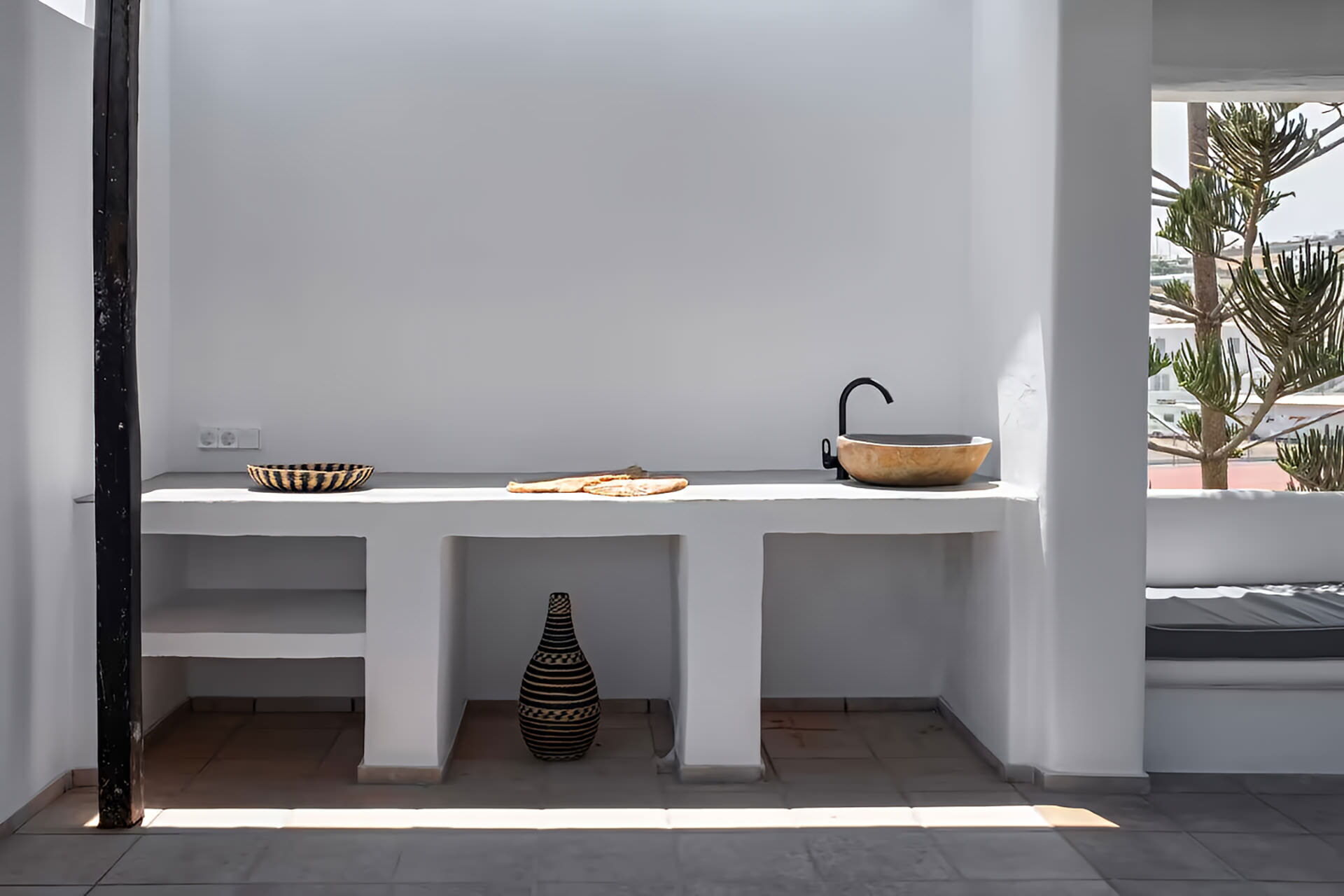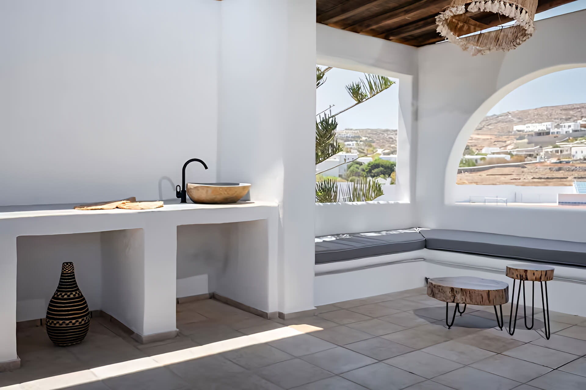 This spacious apartment in Mykonos accommodates up to 6 guests across 3 well-appointed bedrooms and 2 bathrooms, making it an ideal choice for families or groups seeking a comfortable holiday retreat. The apartment is set within a private residence and offers a thoughtfully designed interior layout that balances functionality with the relaxed elegance characteristic of Cycladic living. The 3 bedrooms are configured to ensure restful stays for all guests, while the 2 bathrooms provide ample convenience for the full capacity of 6 occupants. The living spaces flow naturally toward the outdoor areas, connecting the interior comfort with the charm of the surrounding environment.