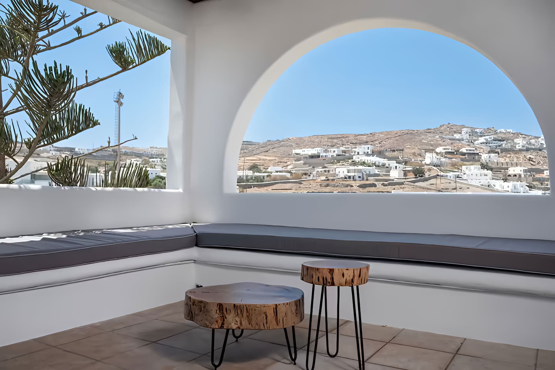 The location of this property places you within easy reach of some of the most sought-after destinations and conveniences that Mykonos has to offer. Korfos Beach, renowned for windsurfing and kitesurfing, is just 150 metres away, while the celebrated Ornos Beach, known for its golden sand, beach clubs, and calm waters, is approximately 400 metres from the property. Mykonos Town, with its iconic whitewashed architecture, vibrant dining scene, and world-famous nightlife, is located 2.5 km away. JMK Mykonos Airport is 3 km from the property, and Mykonos New Port in Tourlos is 5.5 km away, providing straightforward access for arrivals and departures. All local services are reachable within a 3 to 5 minute walk, and a wide selection of restaurants is accessible within 3 to 10 minutes on foot. A bus stop is also conveniently situated within a 3 to 5 minute walking distance, connecting you effortlessly to the wider island.