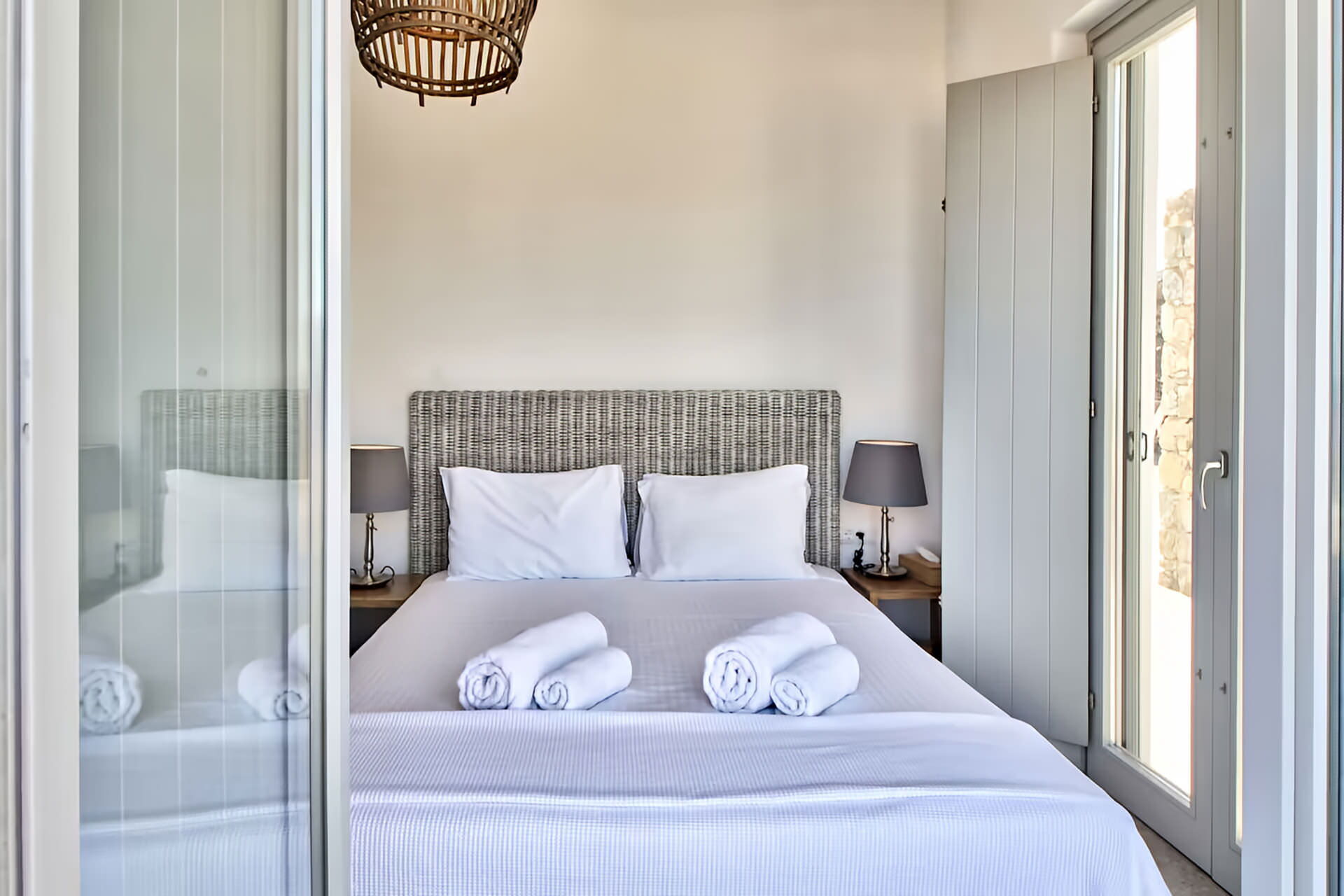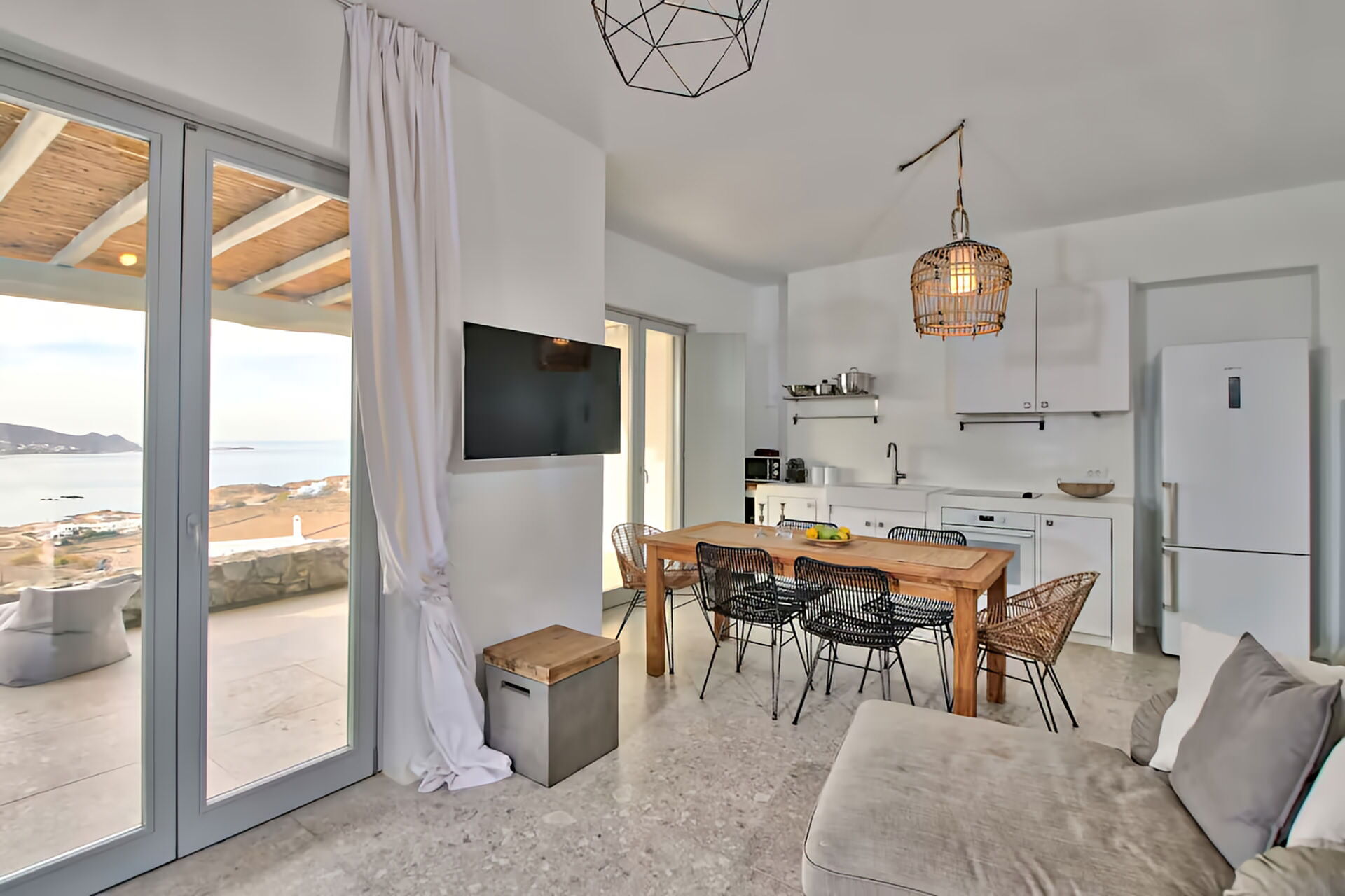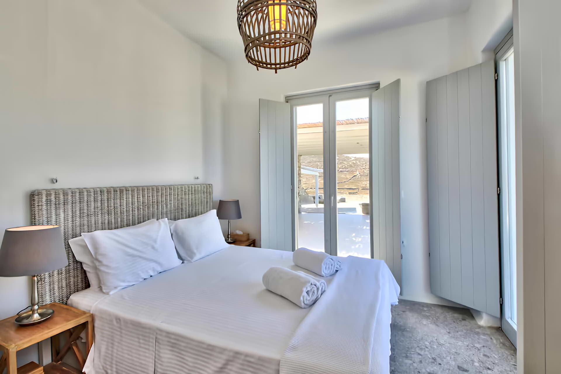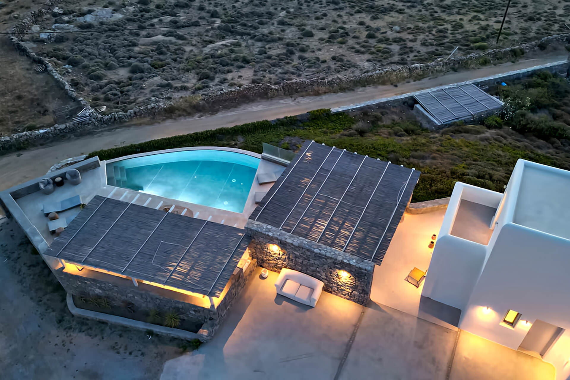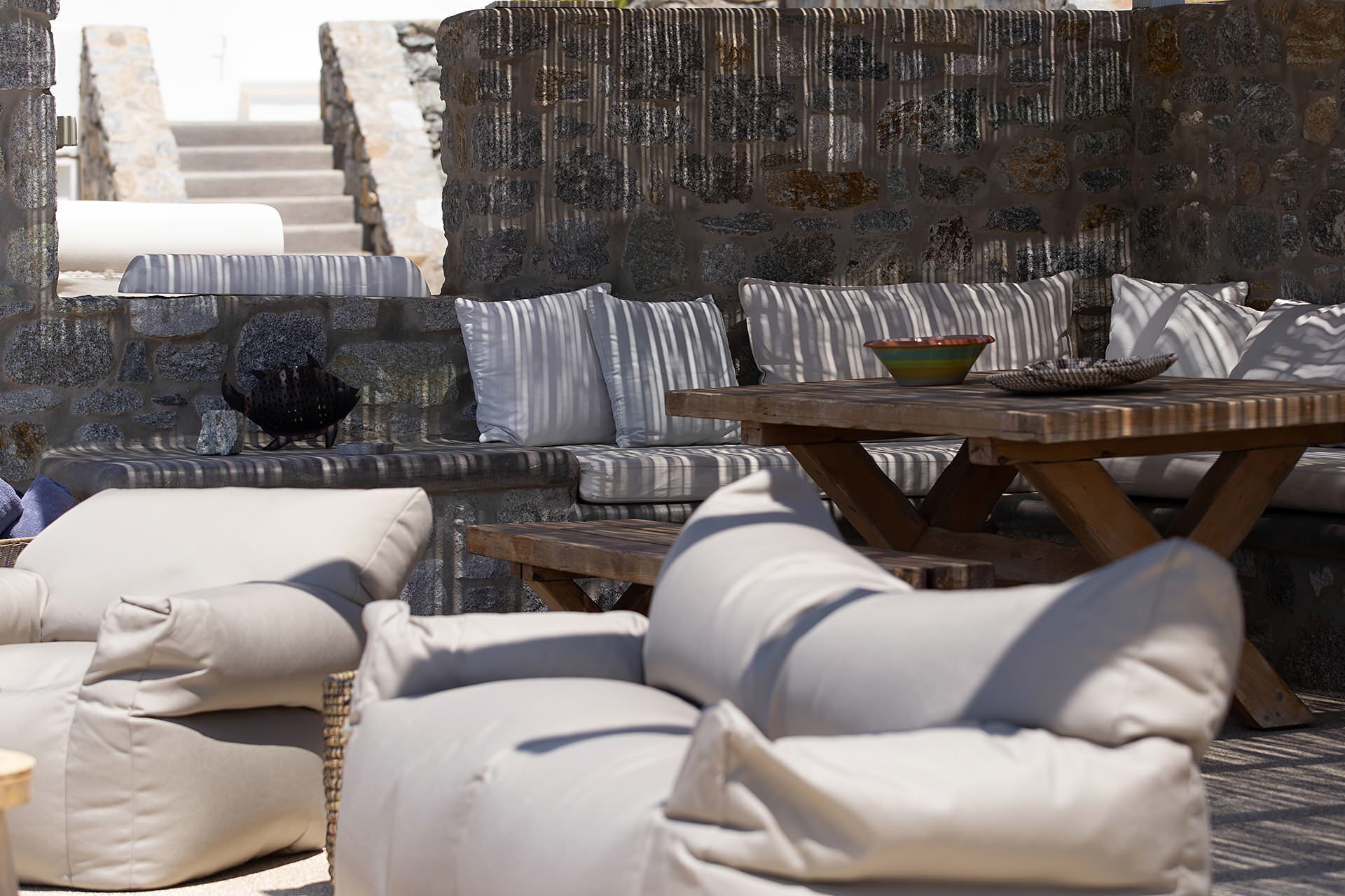 luxury rental home in Mykonos, with amazing sea view, private swimming pool, large garden and patio with outdoor dining facilities