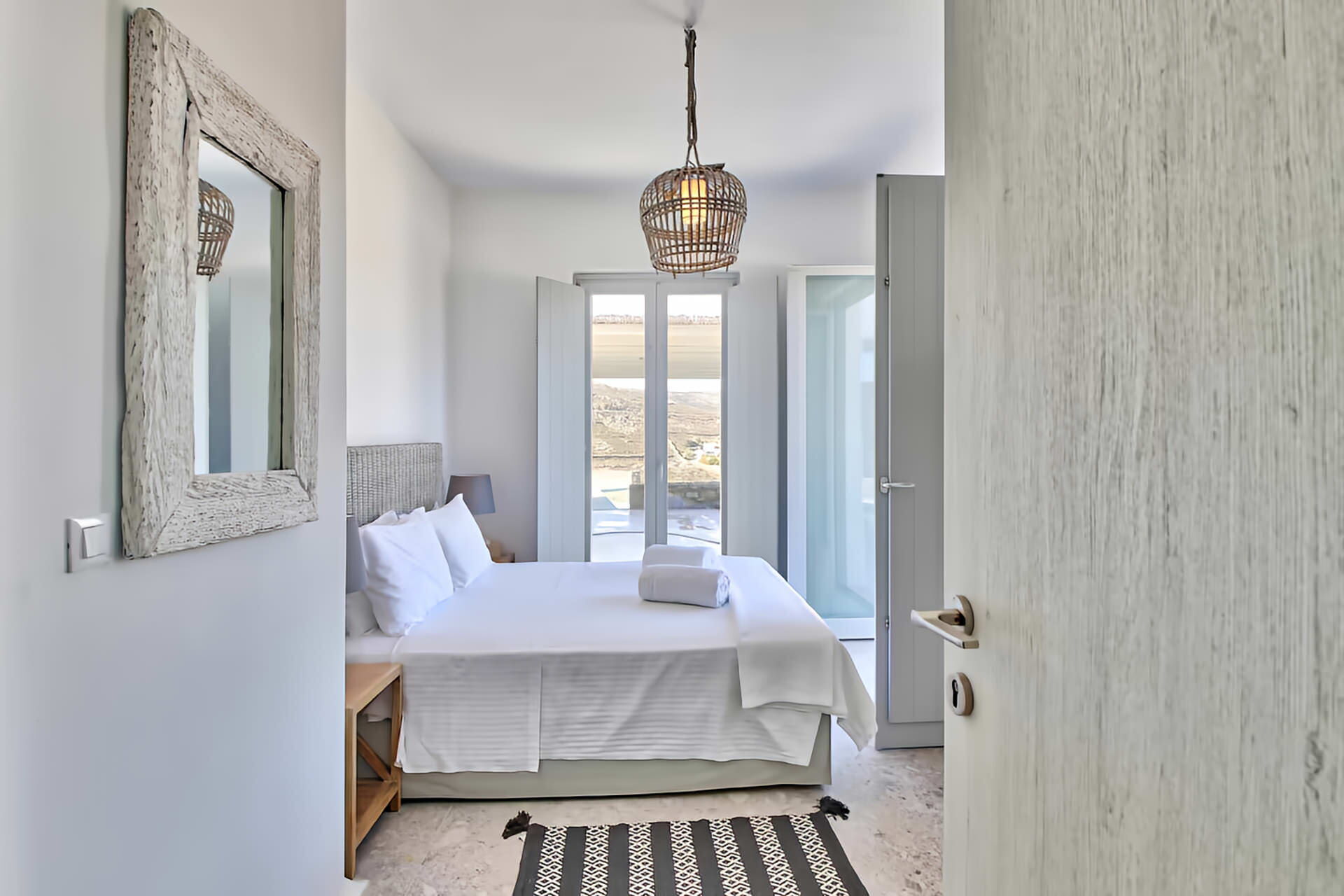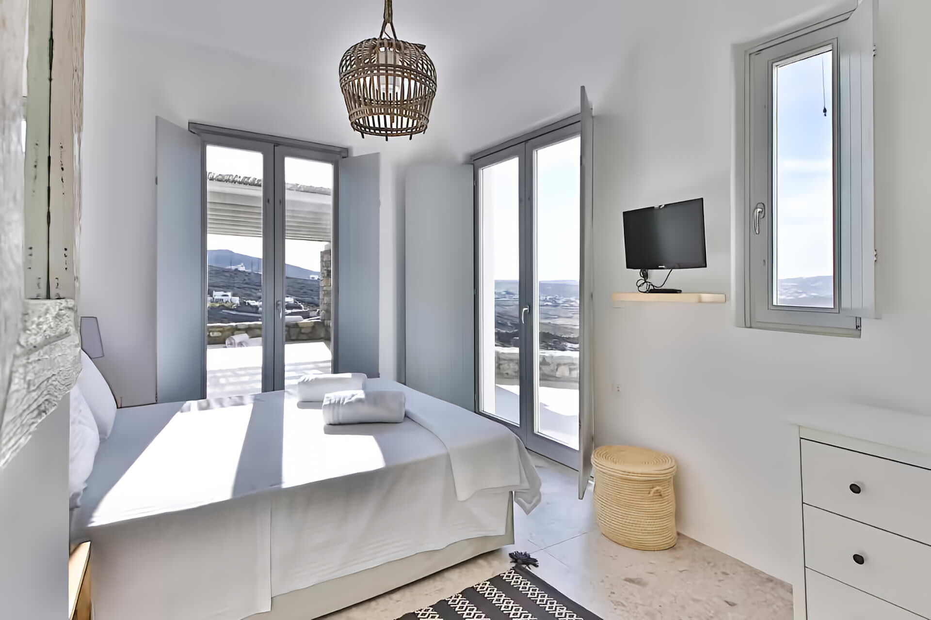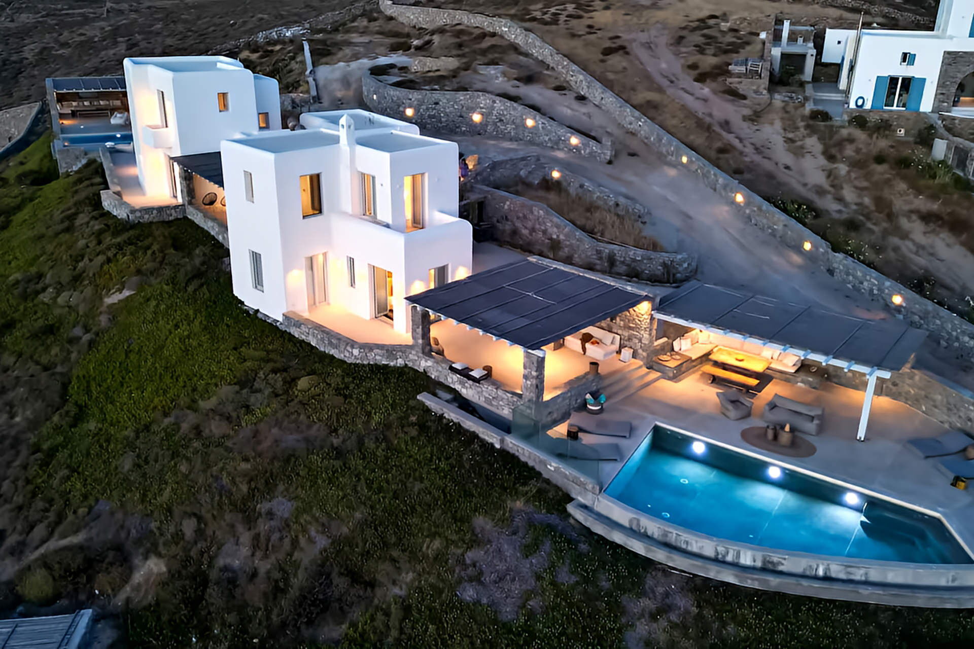 Villa Cornelia 1 is a brand-new luxury holiday villa set on a hillside in Mykonos, Greece, offering breathtaking panoramic views of the Aegean Sea and the iconic Cycladic landscape. Designed with elegant Cycladic architecture, this stunning property accommodates up to 8 guests in complete privacy and comfort. The villa features a private outdoor swimming pool overlooking the sea, a beautifully landscaped yard ideal for relaxing and entertaining, and high-speed Internet Wifi throughout all levels, ensuring seamless connectivity during your stay.