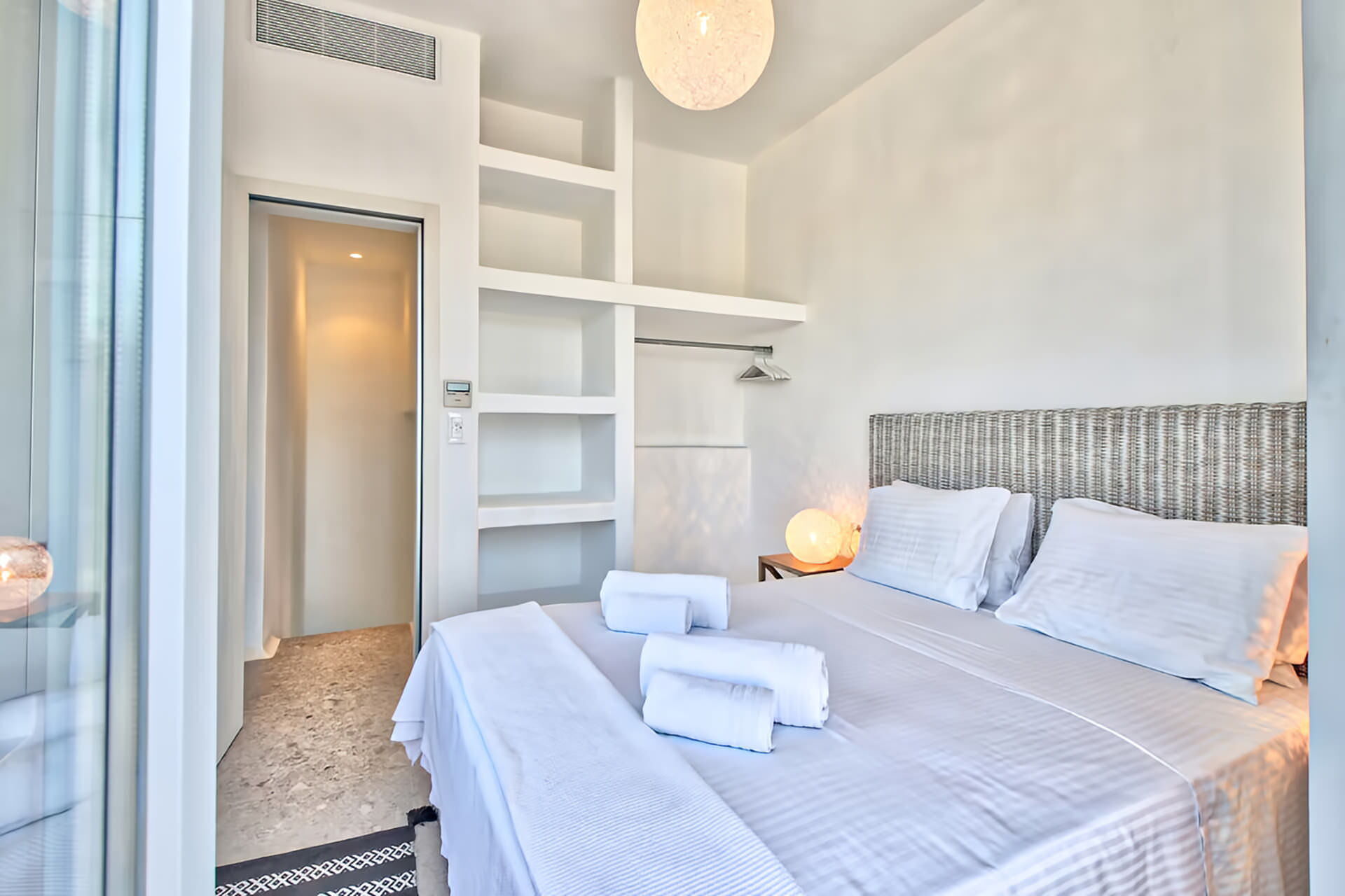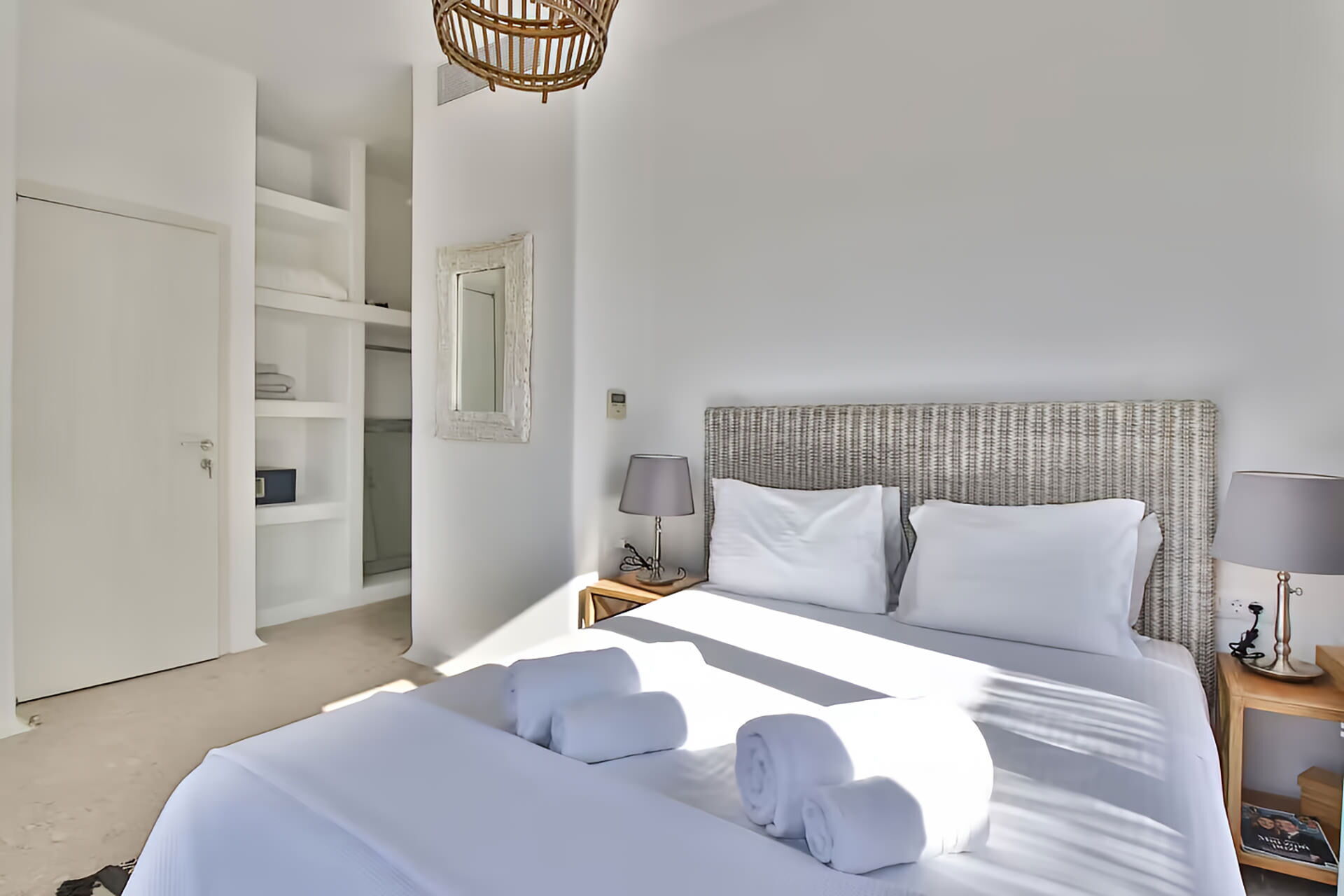 Villa Cornelia 1 is ideally located just 1 km from both Ftelia Beach and Alemagou Beach Bar, reachable within a 2-minute drive. Chora, the vibrant downtown of Mykonos, is 7 km away, as is Mykonos Airport JMK. The New Port is 8 km from the villa. Among the many renowned beaches nearby, you will find Kalafatis and Spilia at 6 km, Lia beach at 7 km, Elia beach at 7 km, Panormos beach at 8 km, and Psarou beach, Super Paradise beach, Korfos beach, and Ornos beach all within 9 km. Scorpios and Paradise beach are approximately 10 km away.