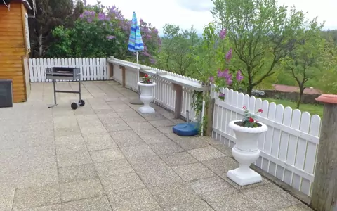 During your vacation stay, you can enjoy various amenities such as a 50-square-meter terrace with outdoor furniture and deck chairs (2). The chalet offers a beautiful view of the countryside. Additional facilities include mosquito nets, a hair dryer, and logs (available at an extra cost). Reserved parking is available at the house. The property allows a maximum of two pets or dogs. Towels are provided for an initial supply.