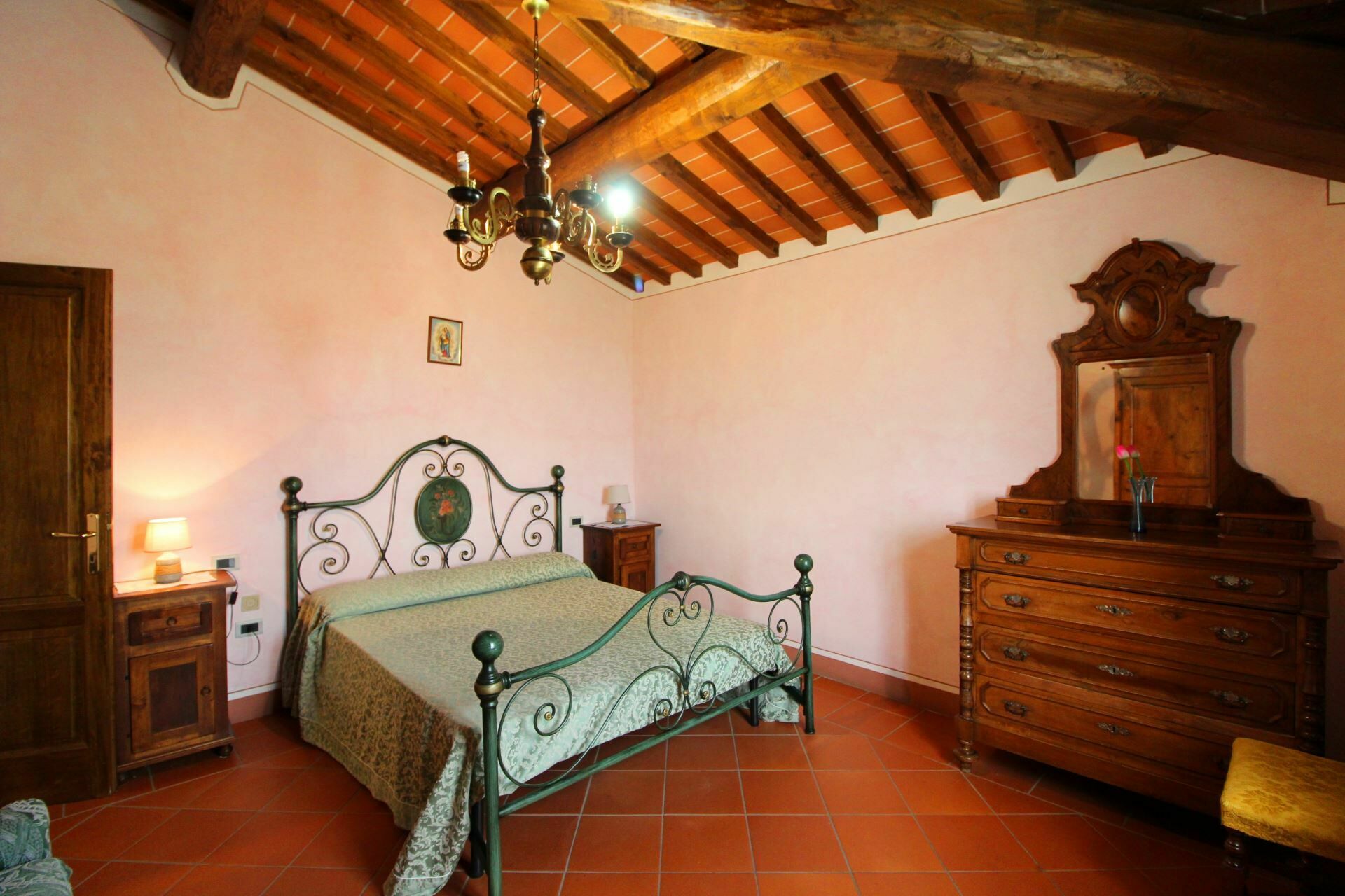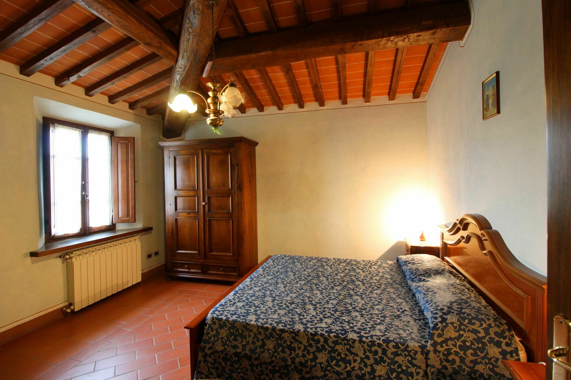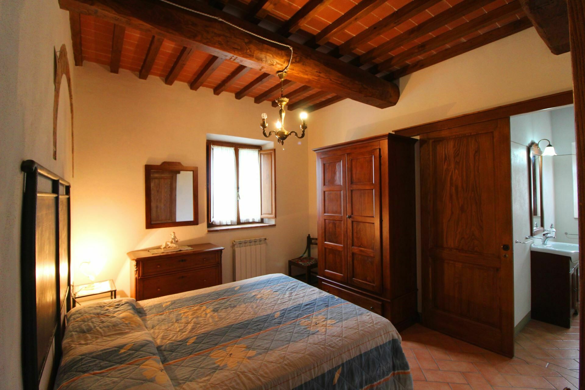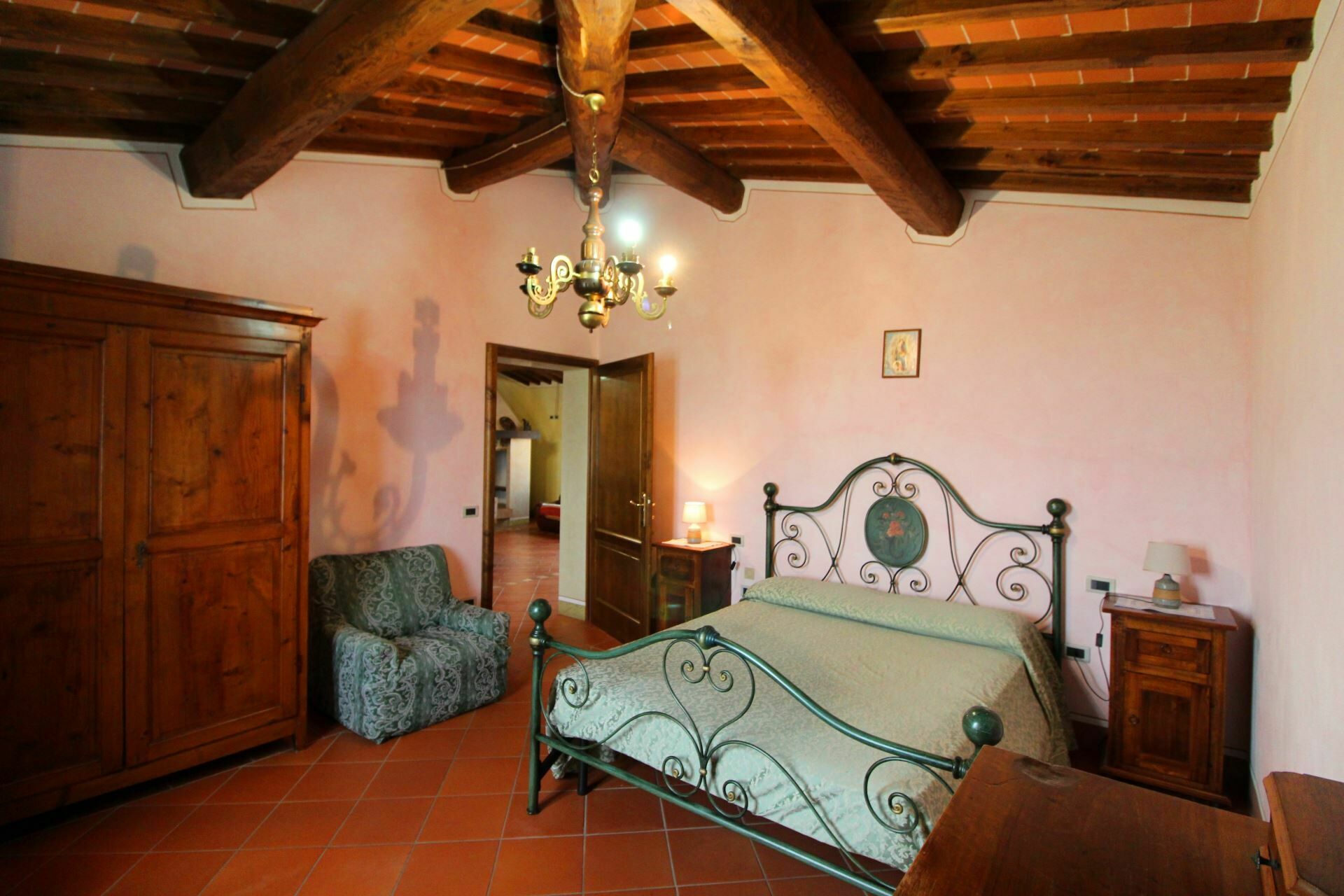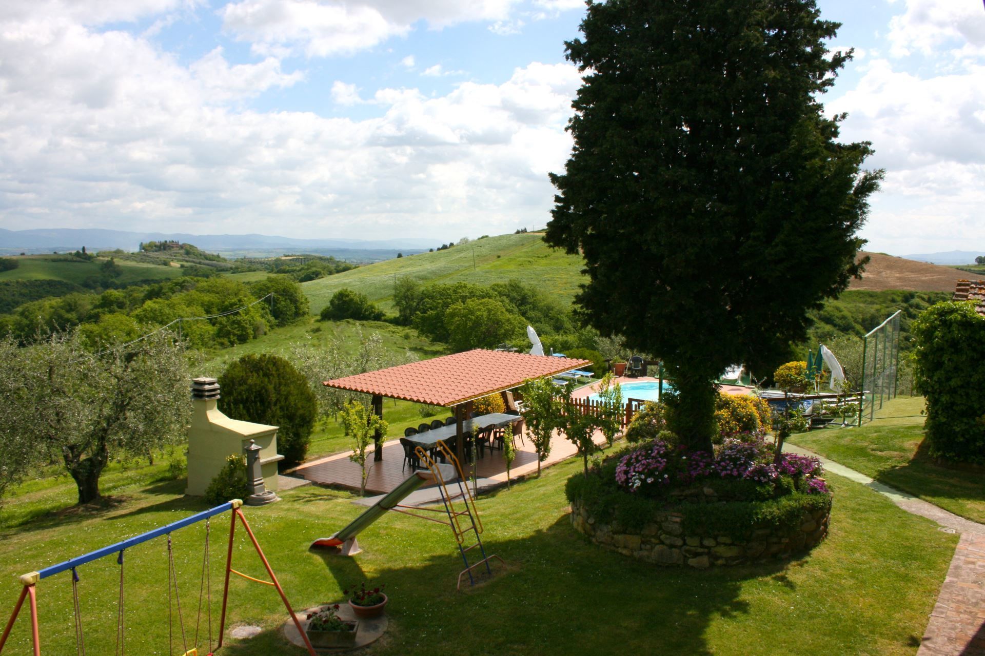 A spacious garden hugged by cypresses and other densely green trees, views of rolling hills and lush Tuscan landscapes all around, a private pool, a terracotta roof, a pretty and traditional Tuscan kitchen, charming bedrooms finished with detail and care, high exposed-beam ceilings, a nice little covered area for dining al fresco, lots of rooms with direct exits out onto the terrace... all of this and more is what you can expect from the gorgeous and wonderfully and typically Tuscan Villa La Fragola (meaning Strawberry Villa) just 500m outside the village of Chianacce, 19km (12 miles) from Montepulciano. Positioned in an especially scenic and peaceful part of the world that is ideal for those looking to get away from it all and relax on their vacation, this gem allows you to get a real taste of the charming and slow-paced life of rural Tuscany while also being ideally located just 5km from the highway and allowing easy access to many of the region’s most famous destinations and attractions. Those who choose Villa La Fragola, therefore, will get the best of both worlds – the restful escape into the dreamy Tuscan countryside and plenty of opportunities to play the serious tourist and tick some key sights off of your bucket list. In addition to Montepulciano being just 19km (12 miles) away, other nearby cities include Cortona 20km (12 miles) away, Arezzo 45km (28 miles) away, Montalcino 52km (32 miles) away, and Perugia 62km (39 miles) away.