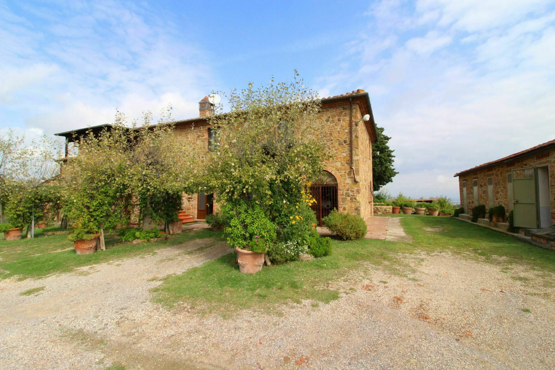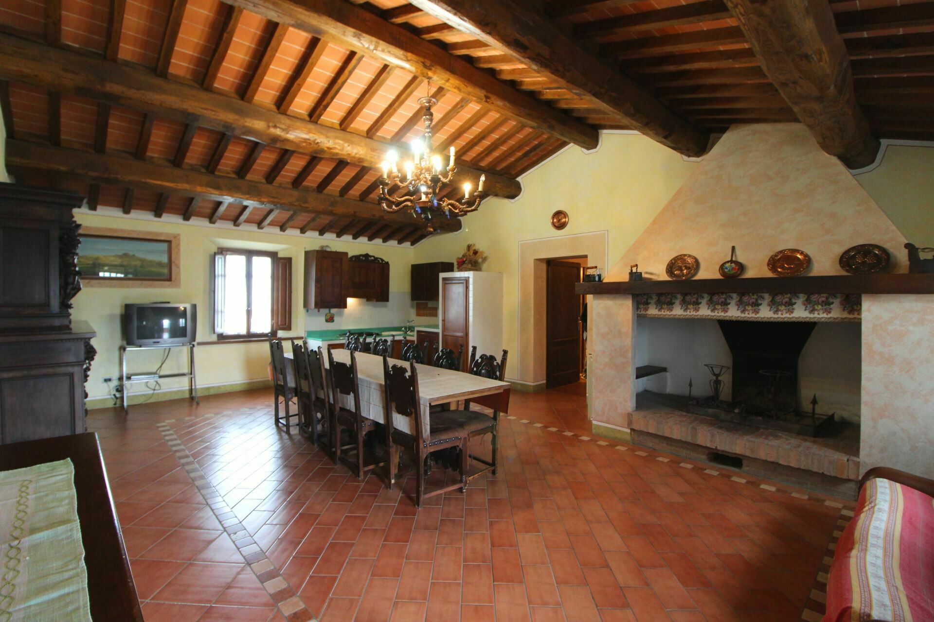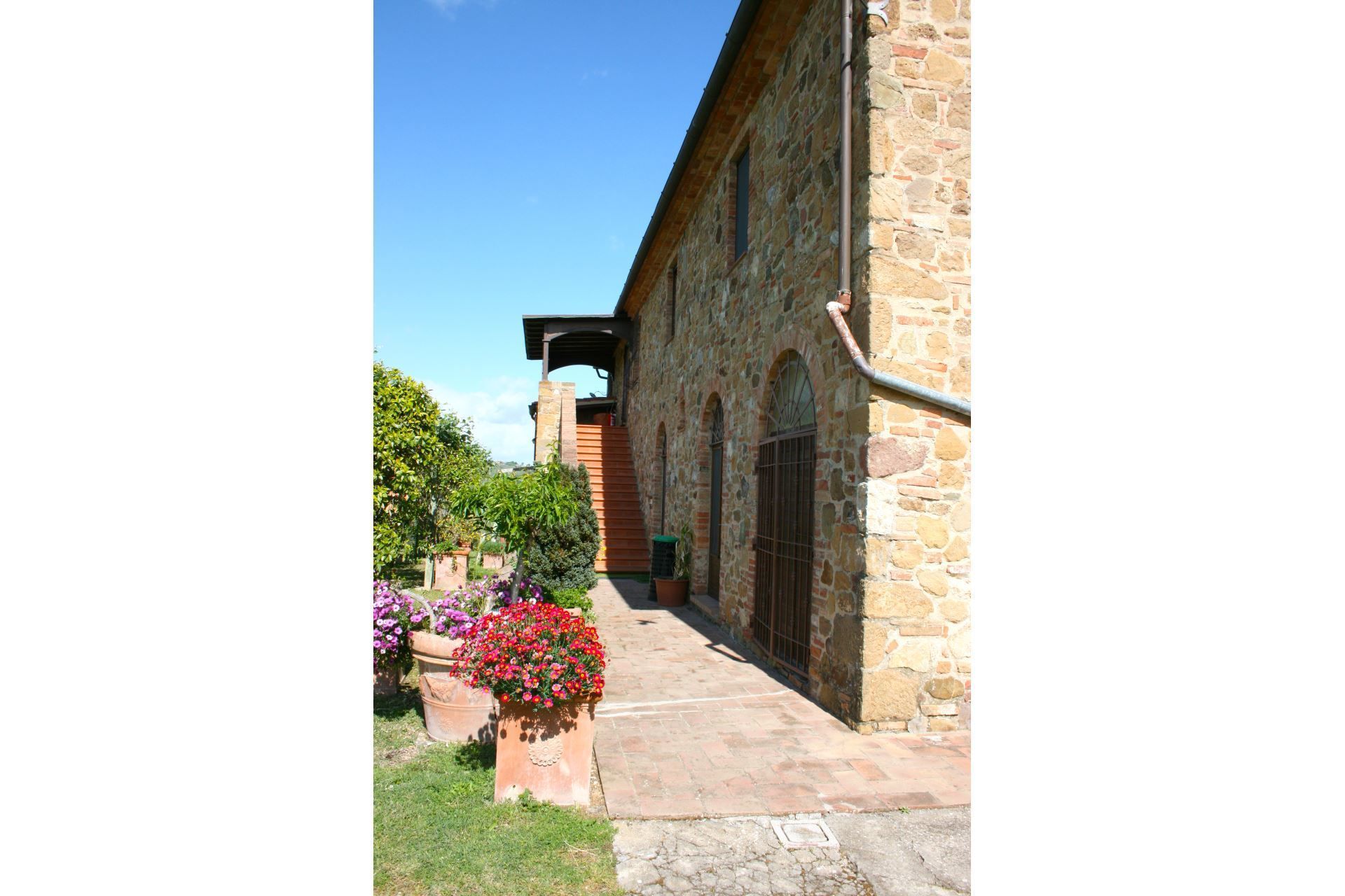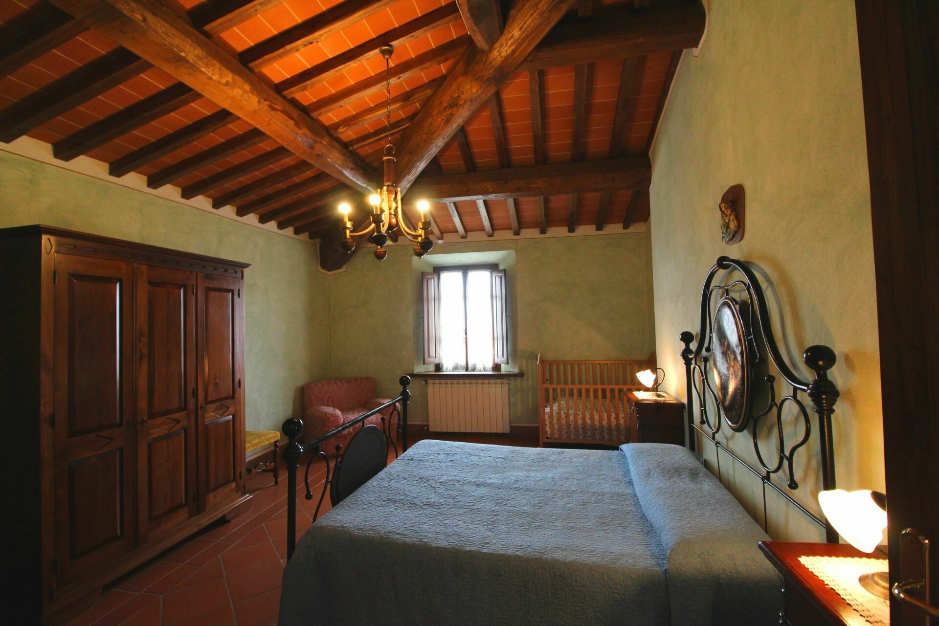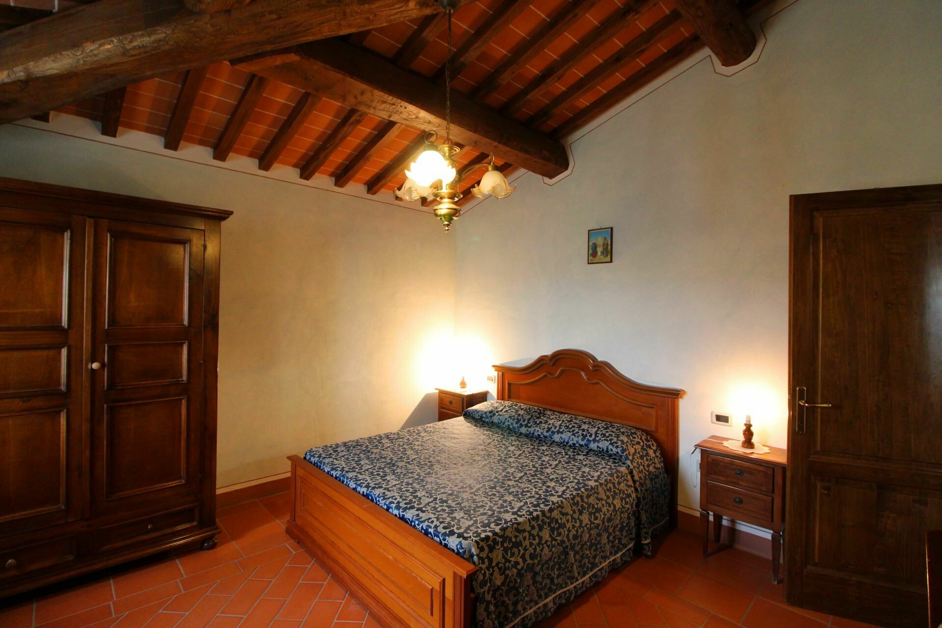 A spacious garden hugged by cypresses and other densely green trees, views of rolling hills and lush Tuscan landscapes all around, a private pool, a terracotta roof, a pretty and traditional Tuscan kitchen, charming bedrooms finished with detail and care, high exposed-beam ceilings, a nice little covered area for dining al fresco, lots of rooms with direct exits out onto the terrace... all of this and more is what you can expect from the gorgeous and wonderfully and typically Tuscan Villa La Fragola (meaning Strawberry Villa) just 500m outside the village of Chianacce, 19km (12 miles) from Montepulciano. Positioned in an especially scenic and peaceful part of the world that is ideal for those looking to get away from it all and relax on their vacation, this gem allows you to get a real taste of the charming and slow-paced life of rural Tuscany while also being ideally located just 5km from the highway and allowing easy access to many of the region’s most famous destinations and attractions. Those who choose Villa La Fragola, therefore, will get the best of both worlds – the restful escape into the dreamy Tuscan countryside and plenty of opportunities to play the serious tourist and tick some key sights off of your bucket list. In addition to Montepulciano being just 19km (12 miles) away, other nearby cities include Cortona 20km (12 miles) away, Arezzo 45km (28 miles) away, Montalcino 52km (32 miles) away, and Perugia 62km (39 miles) away.