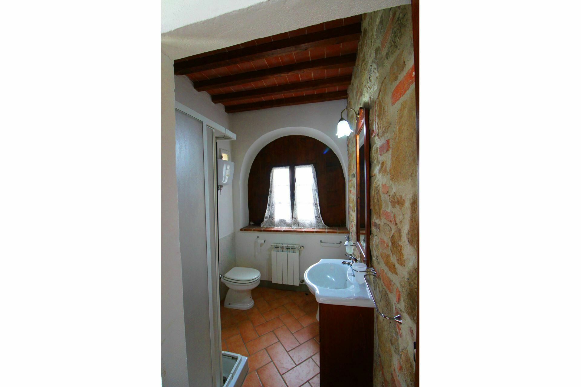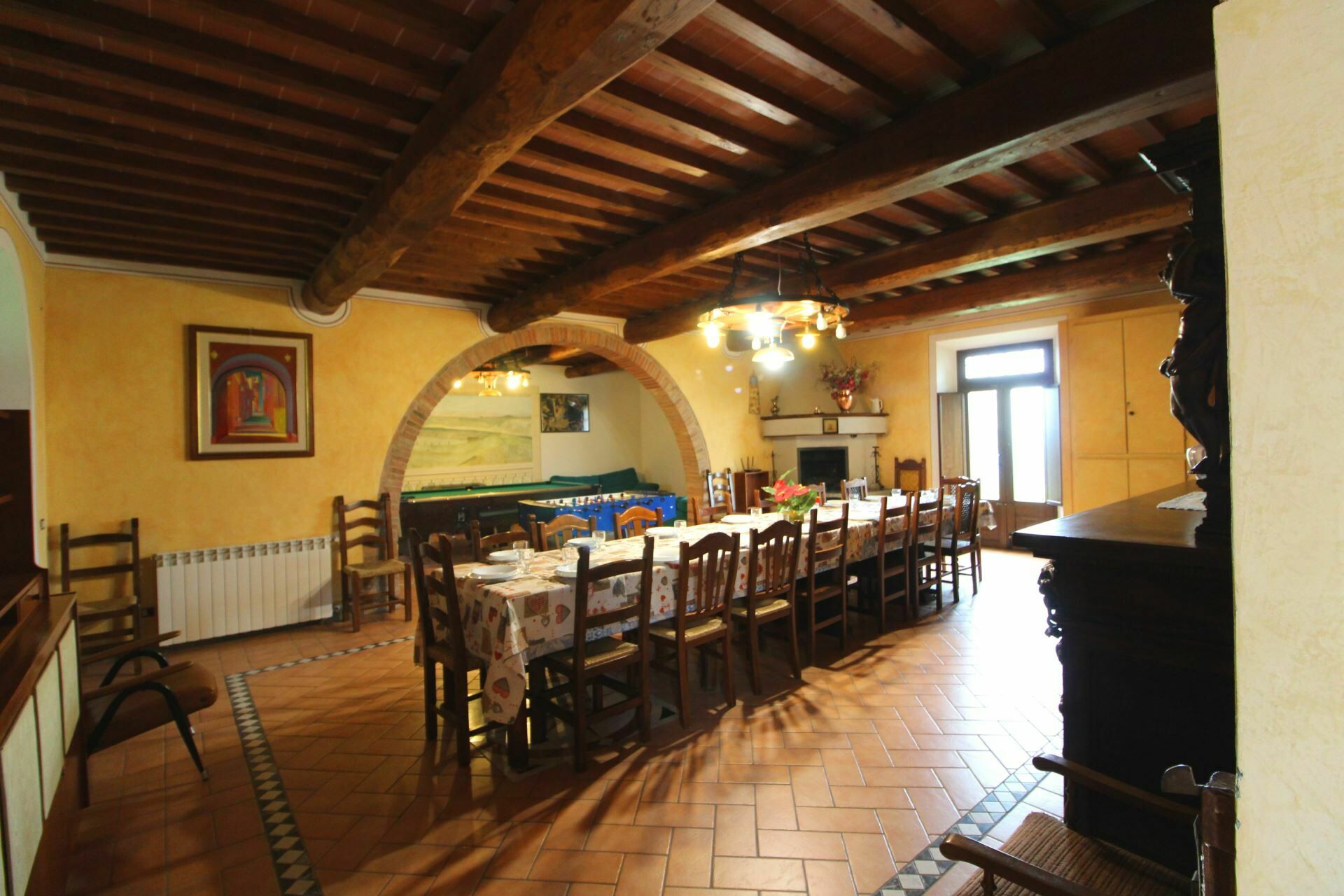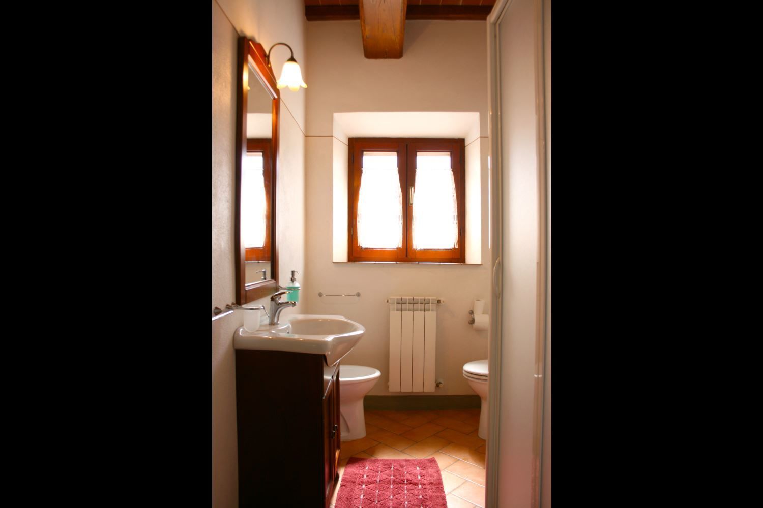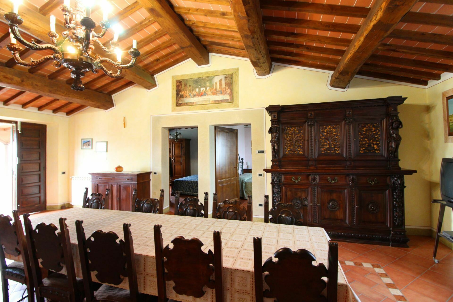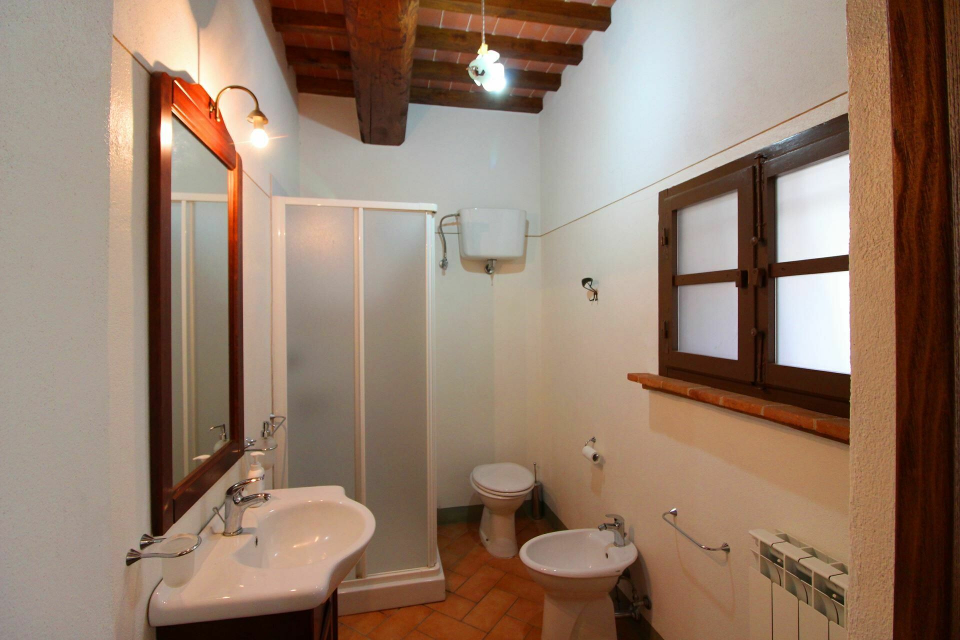 A spacious garden hugged by cypresses and other densely green trees, views of rolling hills and lush Tuscan landscapes all around, a private pool, a terracotta roof, a pretty and traditional Tuscan kitchen, charming bedrooms finished with detail and care, high exposed-beam ceilings, a nice little covered area for dining al fresco, lots of rooms with direct exits out onto the terrace... all of this and more is what you can expect from the gorgeous and wonderfully and typically Tuscan Villa La Fragola (meaning Strawberry Villa) just 500m outside the village of Chianacce, 19km (12 miles) from Montepulciano. Positioned in an especially scenic and peaceful part of the world that is ideal for those looking to get away from it all and relax on their vacation, this gem allows you to get a real taste of the charming and slow-paced life of rural Tuscany while also being ideally located just 5km from the highway and allowing easy access to many of the region’s most famous destinations and attractions. Those who choose Villa La Fragola, therefore, will get the best of both worlds – the restful escape into the dreamy Tuscan countryside and plenty of opportunities to play the serious tourist and tick some key sights off of your bucket list. In addition to Montepulciano being just 19km (12 miles) away, other nearby cities include Cortona 20km (12 miles) away, Arezzo 45km (28 miles) away, Montalcino 52km (32 miles) away, and Perugia 62km (39 miles) away.